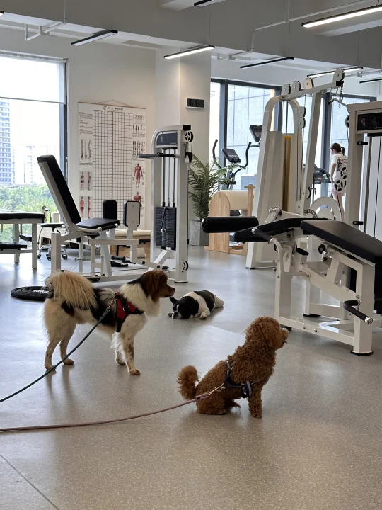 这也算是真正的狗狗友好门店了吧! 健身的同时也可以带小狗来交友玩耍,互不耽误,即健身又遛狗了,哈哈哈哈 ,都是善良小狗,“不听话”小狗会被拴小角落,只有一对一私教 !快来健身 交小朋狗吧!!!