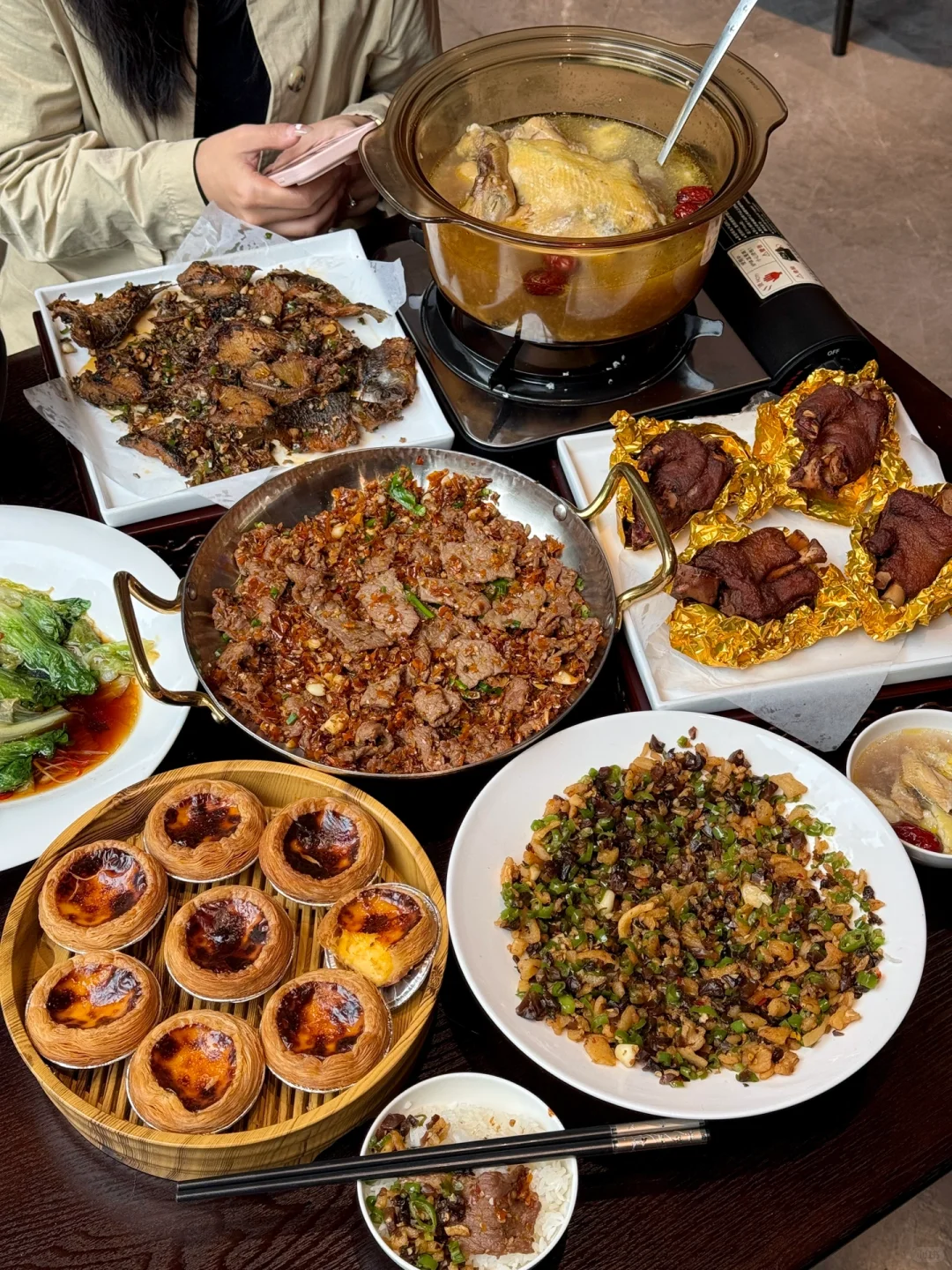 炭烤猪手、千层蛋挞、榴莲煲鸡、香煎禾花鱼…… 这家巨正宗的长沙家常菜馆!!我不允许还有姐妹不知道😭😭一周打卡了三四次都没腻!! 太香了!!!!听说还有人在这家偶遇到了歌手…长沙果然遍地都是明星啊啊啊。。。 他们家的榴莲炖鸡真的是好吃到晕厥!!新鲜榴莲+农家养的土鸡,汤鲜味美连喝了三大碗!! 建议喜欢吃这一口的姐妹记一下这个店名:食也湘·梅溪小馆。