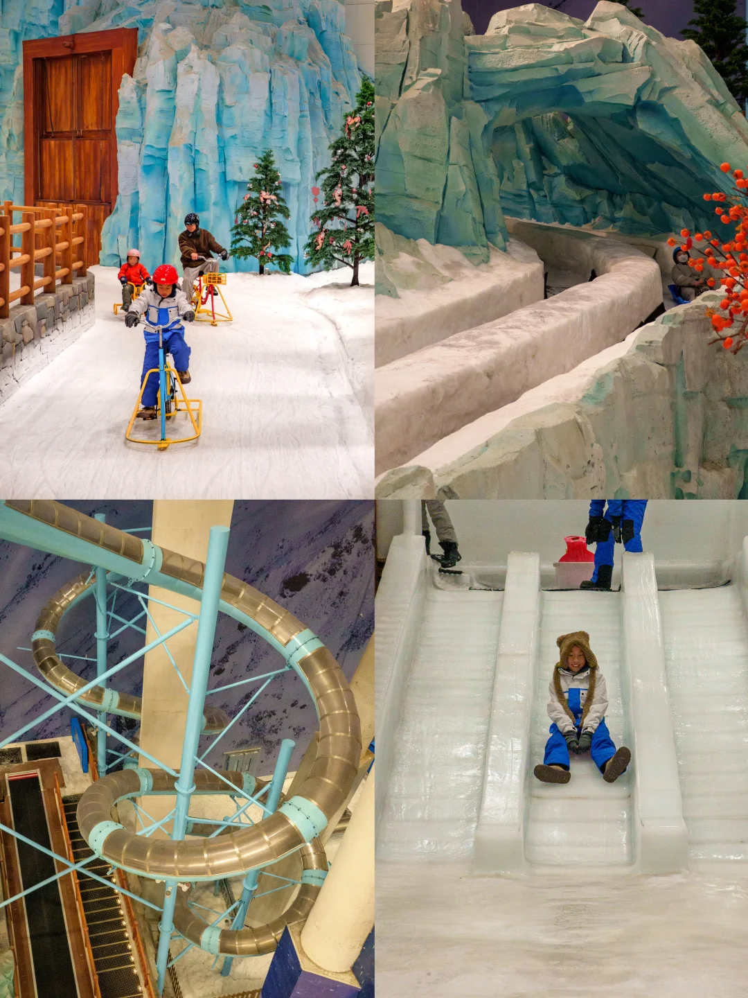 • 室内温度约零下5℃,不玩滑雪🎿,哪怕只是来玩项目也要穿好羽绒服,防滑雪地靴,手套,冬天的帽子,不想自己带雪服(可租)