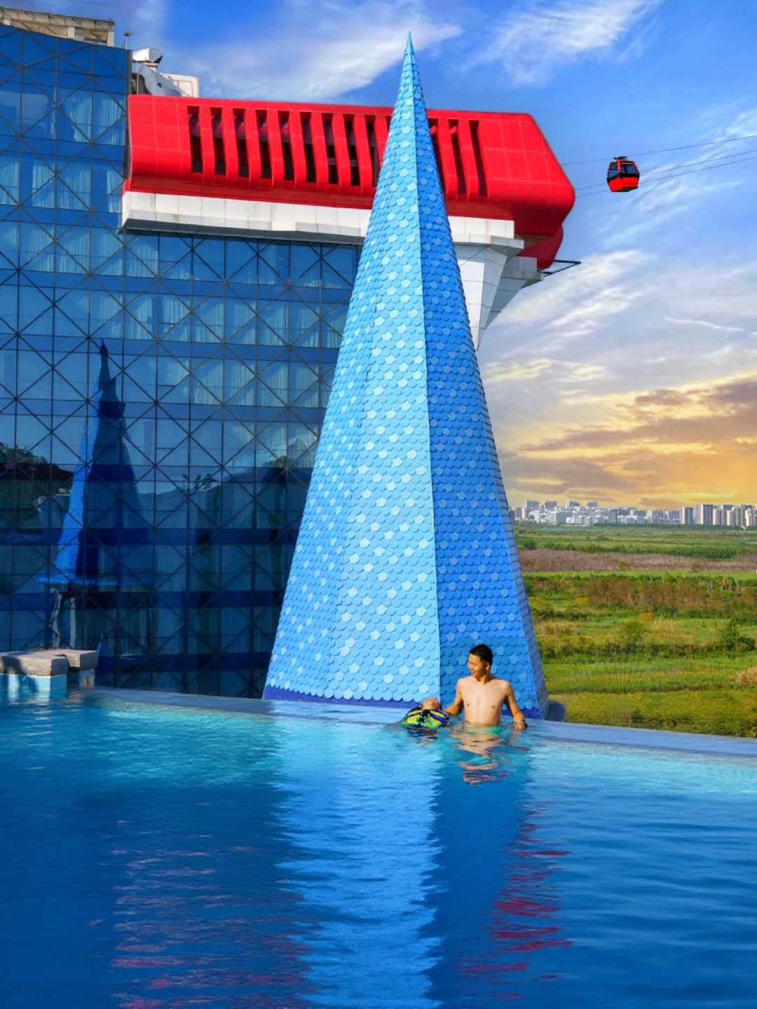 分室内和户外,造浪泳池的在户外的顶楼🆙