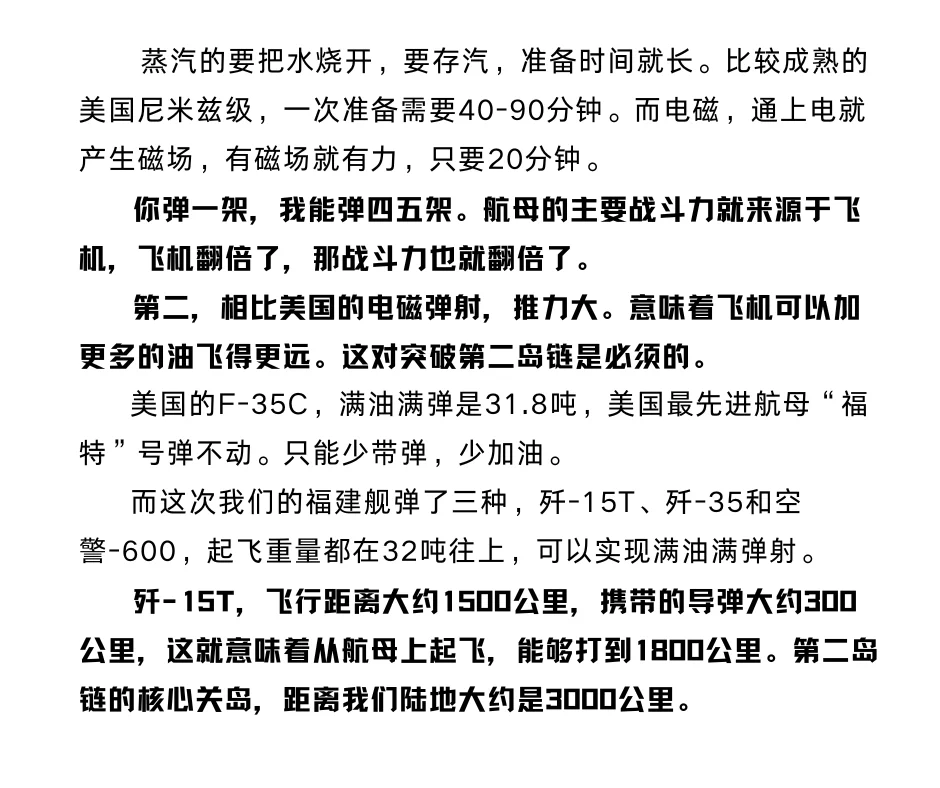 牛逼的不是弹射重量,而是瞬时电流变化对飞机电子元件影响,福特号一弹射F35,上面的元件就乱转失灵,中国解决了这个问题