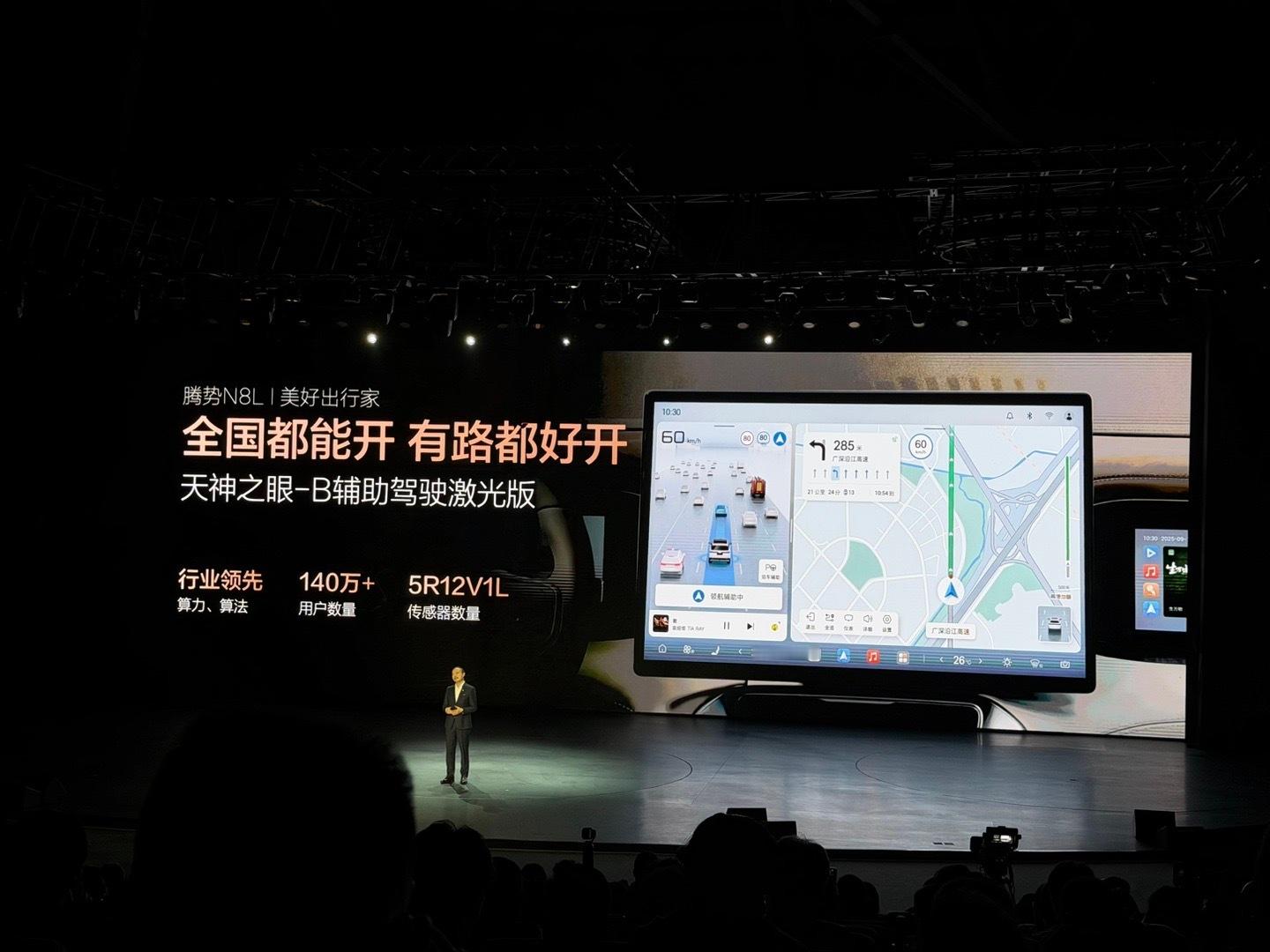 腾势 N8L 这才是家庭豪华大六座该有的样子。超大的六座空间,第三排超大调节空间+座椅加热,天神之眼 B 智能辅助驾驶系统,为智能安全兜底,210km/h 高速避让不侧翻,180km/h 高速爆胎不失控!