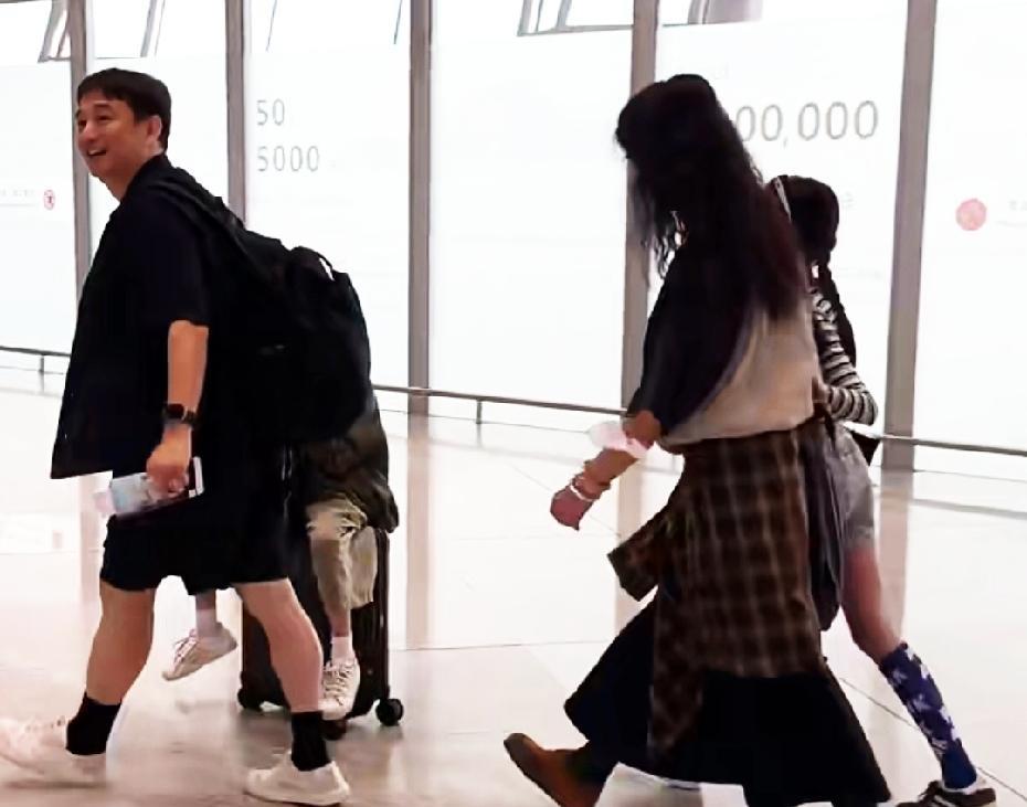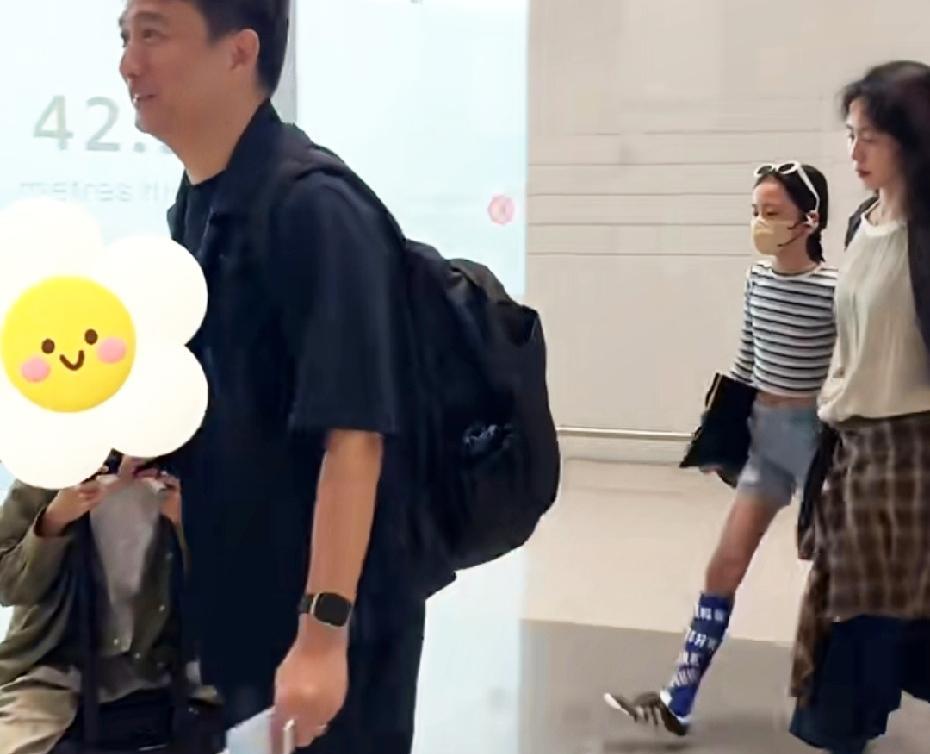 黄磊两口子带小女儿和儿子现身机场,妹妹好漂亮,打扮的很时尚!将来长大也是个瘦高个
