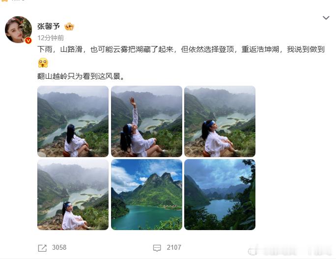 得知张馨予翻山越岭看风景的行动,背后是她说到做到的承诺,这份真诚让粉丝对她多了份特殊记忆。张馨予说到做到张馨予翻山越岭只为看风景