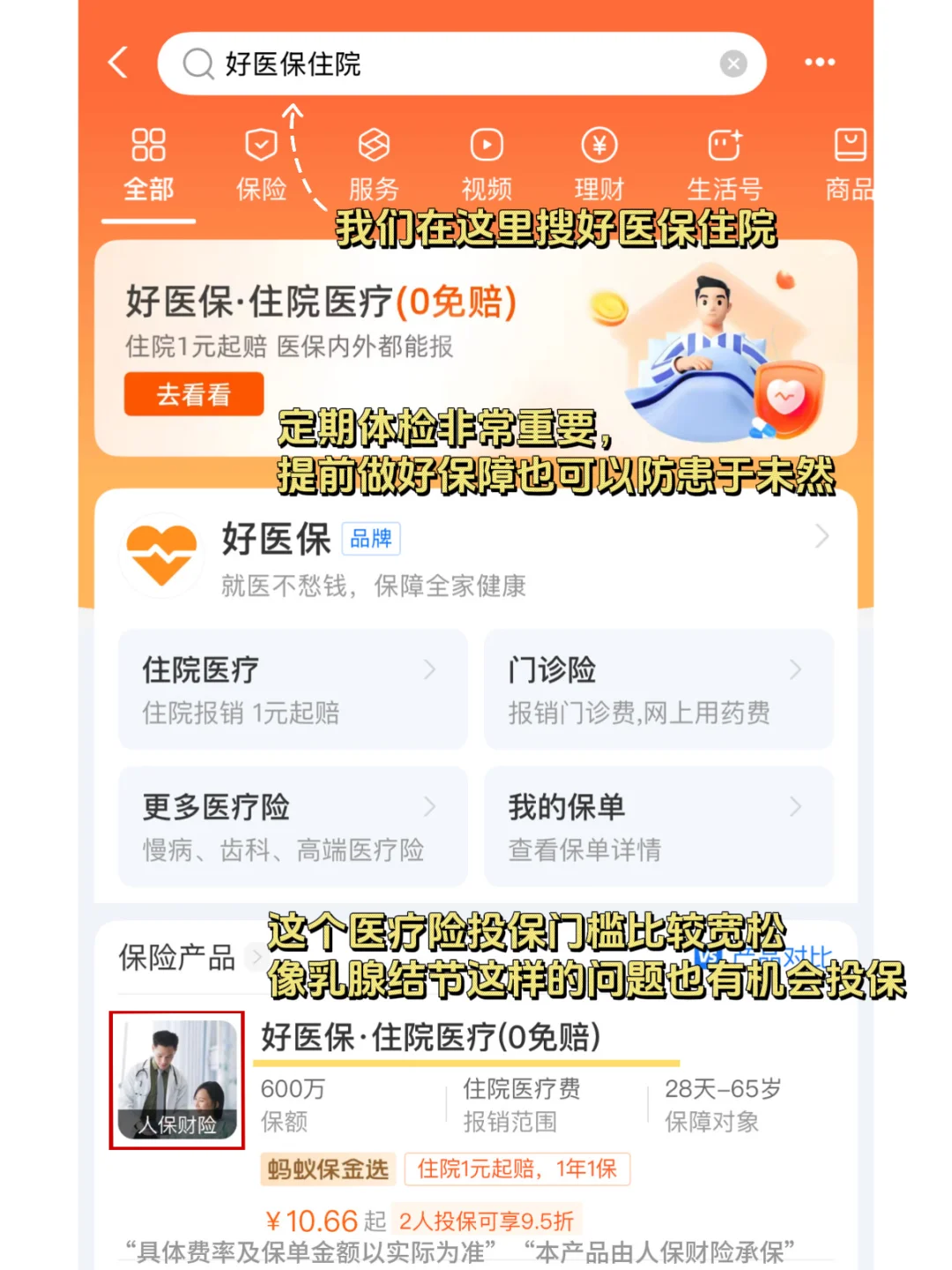 BI-RADS诊断3级及以下均可投保,只有上支付宝搜索【好医保住院】,选准人保财险承保的就能找到。
