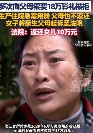 “太荒唐了!”浙江一女子婚后生活拮据,无奈将亲生父母告上法院。起因是结婚时男方支付的18万元彩礼悉数被父母收走,并未置办任何嫁妆。女子婚后多次讨要均遭拒绝,甚至在自身生产、无力承担医疗费的危急时刻,父母也仅给予8800元红包。数次沟通无果后,最终导致母女对簿公堂。 浙江台州某医院的产房外走廊上,小张手里攥着住院缴费单,单子边缘都被捏得有些发皱。 她刚生下女儿没多久,可医疗费已经欠了三千多,这是她第三次给母亲打电话,声音里带着明显的哭腔。 妈,那18万彩礼先给我用用,救个急,以后我肯定还您。 电话那头安静了几秒,随后传来的是一句冷冰冰的拒绝,这钱是给我们养老的,跟你没关系。 2020年6月,经媒人介绍认识的小张和小林订了婚。 订婚那天,小林家的人捧着18万现金递给小张父母,在场的亲戚朋友都夸小林家条件好。 可没人知道,这笔18万其实是小林家拿出全部积蓄凑齐的,为了在订婚时撑场面,他们把家里能挪的钱都挪了。 本来就是经人介绍认识的,两人之前了解不多,婚后日子过得紧巴巴,矛盾也越来越多。 孩子出生后,奶粉、尿布这些开销更是让日子雪上加霜,小张没办法,只好跟父母开口要回当初的彩礼。 可每次跟父母说这事,最后都吵得不欢而散,直到她生孩子住院急需用钱,父母还是不肯松口,小张的心彻底冷了。 但在小张父母眼里,这笔彩礼该归谁,从来都不是个问题。 在法庭上,老两口反复说,按我们这儿的老规矩,彩礼就是男方感谢女方父母养女儿的钱,哪有女儿结婚后还回头要的道理? 他们还解释,本来打算选个好日子给小张办婚宴,到时候会返还几万块给小张,可小林家一直拖着不商量办婚宴的日期,这事就搁下来了。 结合当地的习俗和这家人的实际情况,法院认为,这笔18万既算是对小张父母养育女儿的感谢。 考虑到小张父母没给小张办婚宴,也没准备嫁妆,而且小张的日子确实过得困难。 不过小张父母之前也给过小张8800元的生育红包,还有一些生活费,法院最后判小张父母返还10万。 小张收到转账那天,看着手机里的到账提示,终究没敢给父母发一条消息。 独生女张小美结婚时,14万彩礼让堂哥帮忙保管,当时说好堂哥会照料小美智力残疾的父亲。 后来小美和堂哥因为照料父亲的事闹了矛盾,小美就起诉要回彩礼。 法官没有直接判谁对谁错,而是一笔一笔算清楚彩礼的开支,最后折中判堂哥返还7万,还帮着小美和堂哥和解了。 如今小张拿到了10万彩礼,小家庭的急用钱问题解决了,可她和父母之间的那层隔阂,恐怕不是这10万能消掉的。 就像法官判完案后说的,法律能把财产归属分清楚,却补不好亲情上的裂痕。 在亲情面前,钱本该是拉近感情的纽带,而不是伤感情的刀子。 那些结婚前就把话说透、把账算清的家庭,不是见外,而是明白。 比起事后吵得脸红脖子粗,一开始就坦诚相待,更能守住家人之间的温暖。 信息来源:澎湃新闻2025-06-19发布:亲生女告父母讨18万彩礼!法院判还10万背后,亲情已碎?