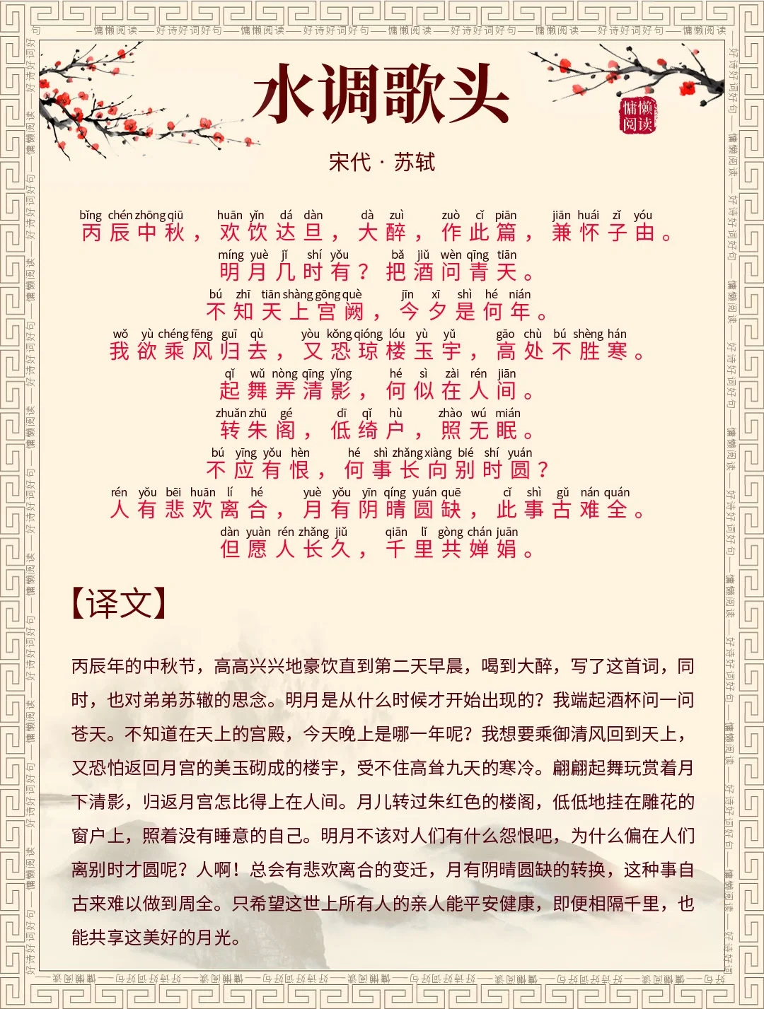 唐诗宋词 每天谈一首古诗词 古诗词赏析 古诗词 腹有诗书气自华 人生流淌在诗歌里 好词好句分享 文学 令人惊艳的句子 宋词 水调歌头 苏轼