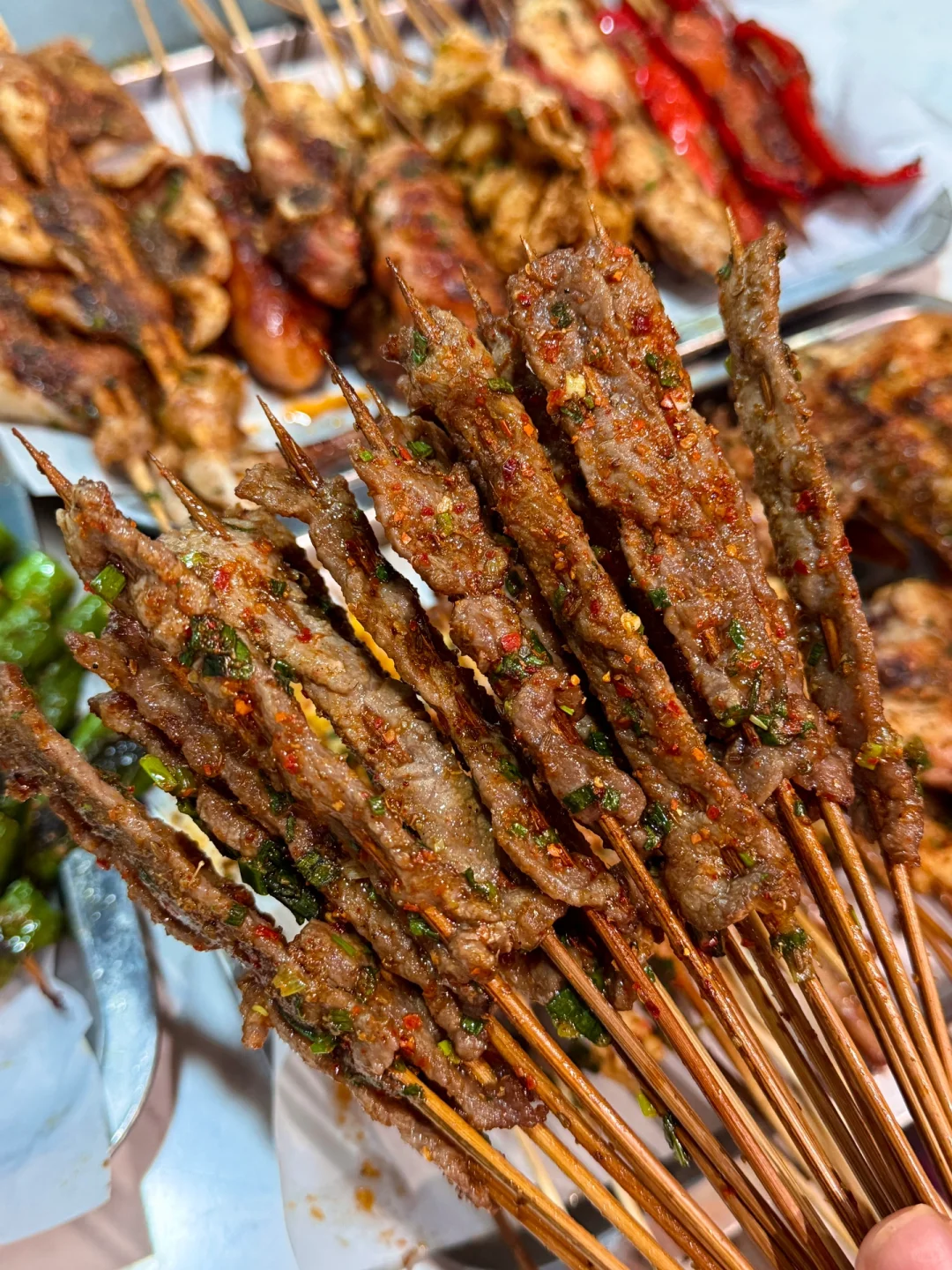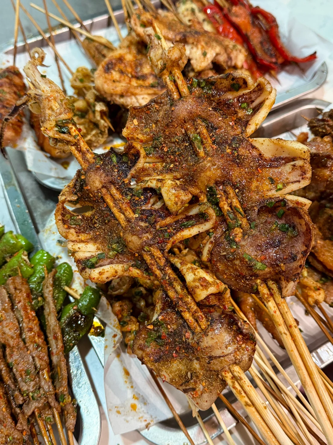 种草这家(上官和肆掌柜)好久了,有口皆碑,听说是长沙老口子的夜宵根据地!每天晚上七八点就坐满了,很正宗的老长沙烧烤、还有正宗清水涮羊肉!不输北京!菜品我们觉得没有踩雷的!烤鱿鱼巨巨巨入味,很大一个!还有烤鸡腿、彩椒牛肉、吐司…一口下去很香很满足!该怎么形容这一顿有好吃!