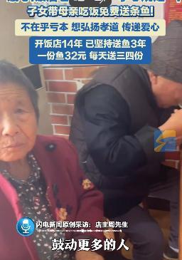 “活该他发财!”河南一男子带着全家人到饭店吃饭,突然店主端来了条鱼放在了桌子上,男子疑惑的看着店主,只因他没点这道菜,不等他开口问,店主便主动解释,原来这是店里立下的“孝心规矩”:子女带父母吃饭,免费送条鱼!网友:孝顺父母的人值的尊敬! 在这个人人喊着“忙”的时代,陪父母吃顿热饭似乎成了奢侈的事。 我们总说要尽孝,可孝心到底该藏在红包里,还是饭碗旁? 不过,在河南周口城乡接合部的一家烩面馆里,这个问题有了最实在的答案。 这家开了14年的老店没有豪华装修,却因一条坚持了三年的规矩被全网熟知。 只要子女带着父母来吃饭,老板就会免费端上一条红烧鱼。 热气腾腾的鱼刚出锅,酱汁的香气能飘出半条街,鱼肉炖得酥烂,连老人不用费力就能咬动。 这事得从2019年腊月说起,老板李建国记得很清楚,那天飘着小雪,一位老太太独自来店里,只点了两份最便宜的烩面打包。 闲聊时老太太说,儿子在广东打工不回家,这两份面一份当年夜饭,一份初一热热吃。 看着老人佝偻的背影,李建国把厨房最后一条红烧鱼装进了她的塑料袋,老太太边走边掉眼泪的模样,他记了好久。 次日,店里门口就贴了张A4纸:“带爸妈来,送红烧鱼一条”。 如今三年过去,那张A4纸已经换成了木质牌匾,送鱼的登记本也写满了12本。 每天三四条鱼,母亲节最多时送出28条,算下来整整一万多条。 一条鱼进价13块,加上调料和人工,送一份就少赚80块,可李建国从没含糊过。 有熟客劝他别这么“傻”,他总摇头,我不是做慈善,是抢时间,抢子女陪爸妈吃顿热饭的时间。 上周三傍晚,40多岁的张大叔搀扶着八旬父母走进店里,刚点完菜,李建国就端着鱼过来了。 叔,送您的!咱这儿带爸妈来就有这规矩。 张大叔愣了一下,赶紧起身接盘子,手都有些抖,我平常总跟朋友聚餐,难得带老人出来,没想到还能遇上这暖心事儿。 鱼端上桌时还冒着热气,张大叔先给父母夹了两块最嫩的鱼肉,老人慢慢嚼着,嘴角一直挂着笑。 李建国的店挨着客运站,周口又是劳务输出大市,60岁以上人口占户籍的21%,比全国均值还高3个点。 他见过太多老人独自来吃饭,点一碗面分两顿吃。 所以送鱼时他从不多问,不管顾客点的是8块钱的面还是满桌硬菜。 不管是真心尽孝还是听说有免费鱼才来,只要老人能坐在饭桌上,他就高兴。 有次一位在外省的姑娘特意飞回来,带78岁的妈妈来吃鱼,老人把鱼骨头都嚼碎了,李建国看着心疼,又多送了一碗热面。 有人学他搞活动,隔壁奶茶店推出“带爸妈第二杯免单”,可三天就停了,老板抱怨老人不爱喝奶茶,来了只占位置。 李建国却说,赠品要对胃口,更得对心。 他特意让18岁的儿子在店门口放了把椅子,专给等位的老人坐。 儿子一开始嫌丢人,现在每天都把椅子擦得锃亮,还会主动给老人添茶水。 这看似“亏本”的生意,反而让老店的营业额涨了30%,从每天卖120碗面变成180碗。 带家人来的顾客消费稳定,更易成回头客,还有外地游客驱车百十公里来吃面,就为看看这“孝心鱼”怎么端上桌。 周口市文明办去年给李建国评了“孝老爱亲道德模范”,说他“用一条鱼把孝道变成了烟火气”。 网上有人讨论,说为了免费鱼带父母吃饭,会不会让孝心变味? 可在李建国看来,这根本不是问题。 就算一开始是为了占便宜,只要坐在一起吃饭,唠两句家常,老人心里就暖和。 感情是处出来的,陪伴多了,孝心自然就真了。 就像店里那三面贴满老人照片的墙,起初是单独来吃饭的老人留影,后来不少子女专门来取照片,顺便点三碗面,陪老人再吃一顿。 现在李建国还有个打算:再送7年鱼,到他60岁就关店,好好陪自己的老母亲。 他算过,那时送鱼的钱刚好等于14年没涨价的差额。 就像李建国说的,孝心从不在朋友圈的晒图里,而在筷子递过去的瞬间,在鱼肉的温度里,在陪父母唠的家常里。 毕竟亲情的本质不是“纯粹的动机”,而是“具体的陪伴”。 信息来源:闪电新闻2025-09-26发布视频