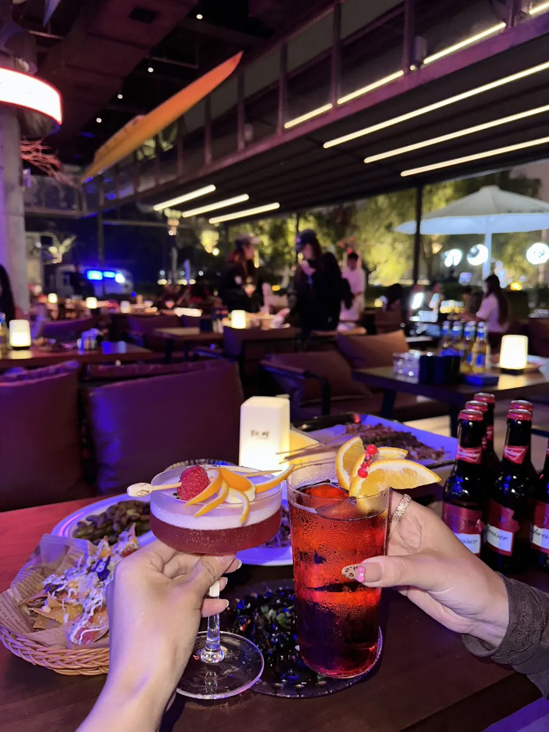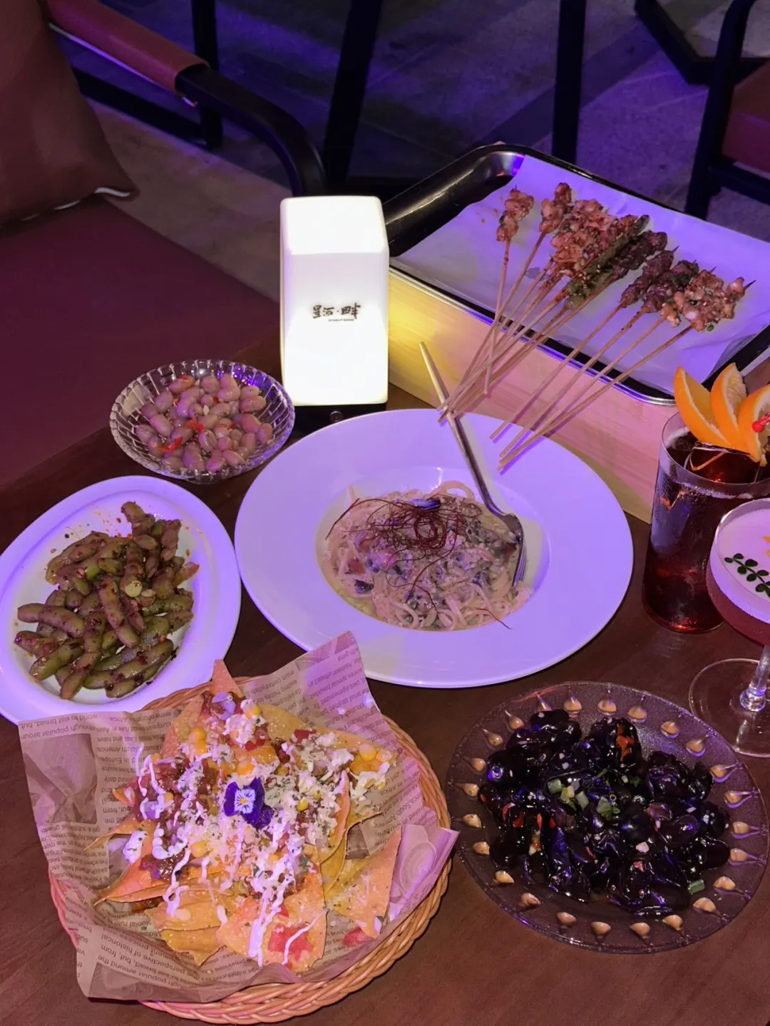 我喜欢这样的夜晚 更具体一点 晚风 音乐 酒精 微醺🍸 - 在北辰挖到一家新开的宝藏bistro 直接把我本周的快乐值拉满~ 下电梯就被氛围拿捏了🤏🏻 暖黄的灯光 慵懒的音乐 晚上还有驻唱歌手浅唱 整个人瞬间从工作的疲惫里抽离出来 - 点两杯特调小酒 再配上几样下酒小菜 边吃边听歌边聊天 时间好像都变慢了 这种不吵不闹 刚好能让人放松的微醺感 真的太chill了 而且拍照也美美哒📷 希望你能拥有一个愉快的微醺夜晚~