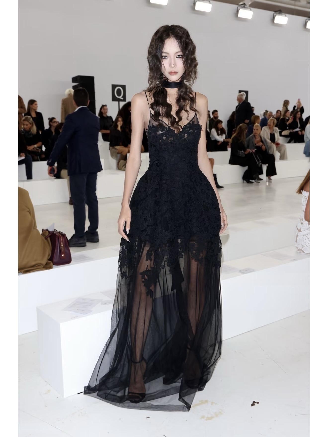 窗边的风裹着浅淡的光,裙摆随呼吸轻晃。黑衫露肩勾出松弛的软,紫蕾丝漫过膝弯,把日