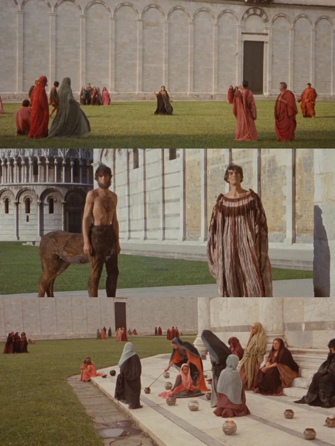 2️⃣整部电影充满了艺术感和原始生命力,虽然是希腊神话故事,但帕索里尼跳脱了地域界限,不仅从南欧的民间古老仪式取材,还糅合了很多东方元素,你甚至可以听到藏区圣歌、日本传统乐。