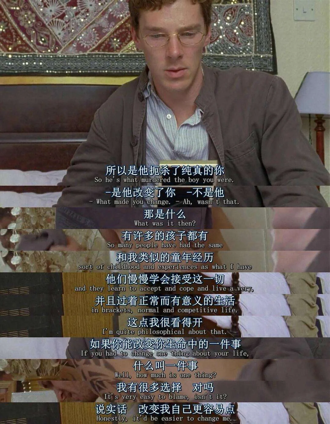 导演:戴维·阿特伍德 主演:本尼迪克特·康伯巴奇(卷福)丨汤姆·哈迪 —— ✨斯图尔特是真实存在的人物,他出生于1968年,死于2002年。 - ✨可怜的斯图尔特,从小到大经历了各种艰难的生活,生命临近终了,才有幸遇到了一个真心朋友。 - ✨别人对他人生造成的伤害,引来了恶魔,却要他去承受这种痛苦,这太残忍,太不公平。更难得的是,他始终真诚待人,坦诚待己。 - ✨斯图尔特不只是他一个人,每一个孩子的成长都不可疏忽,从小到大遇到的每一个人都可能改变他们的人生。