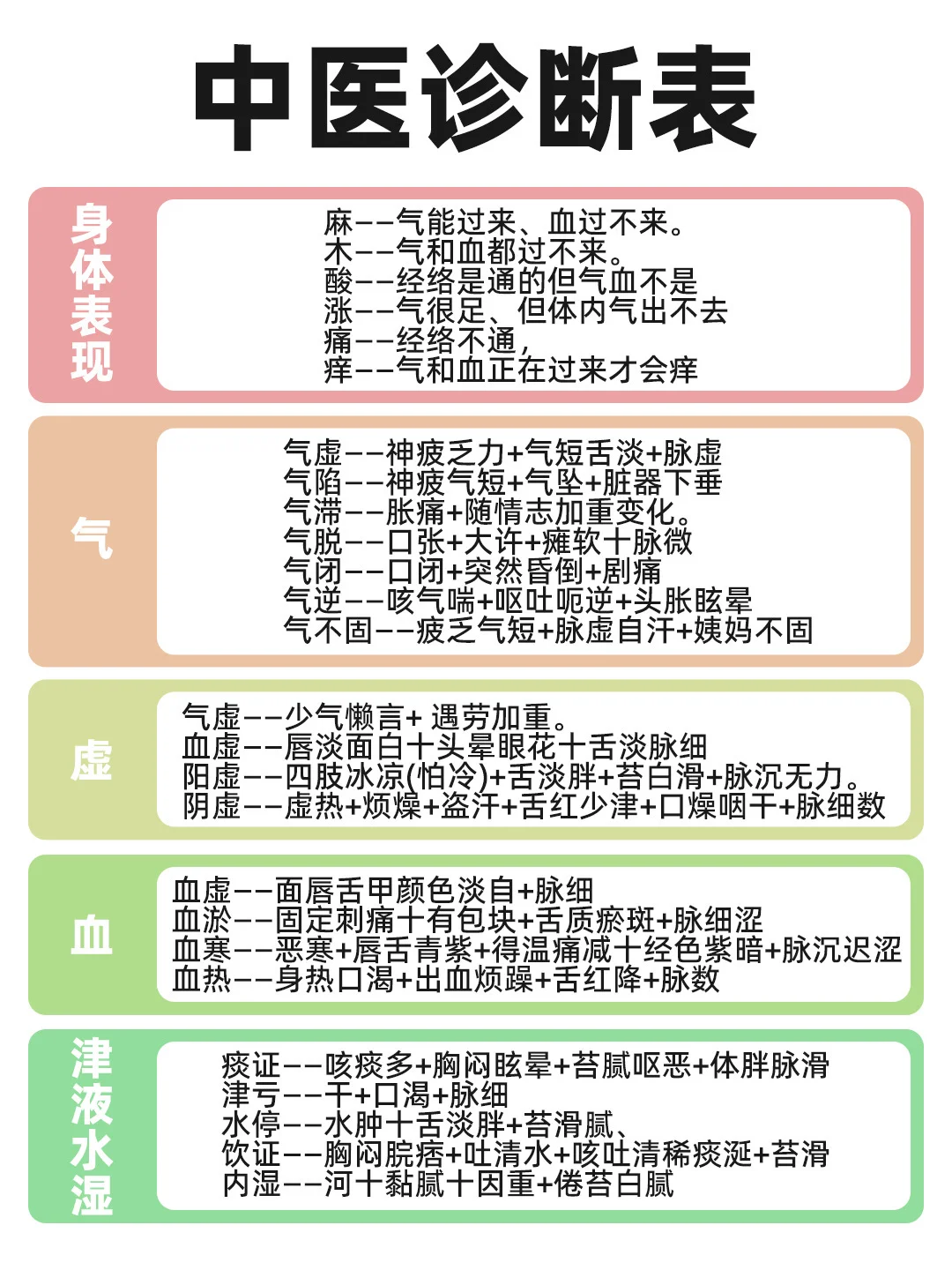 5️⃣虚:正气亏虚,邪气不著,表现为不足、松弛、衰退的各种证候