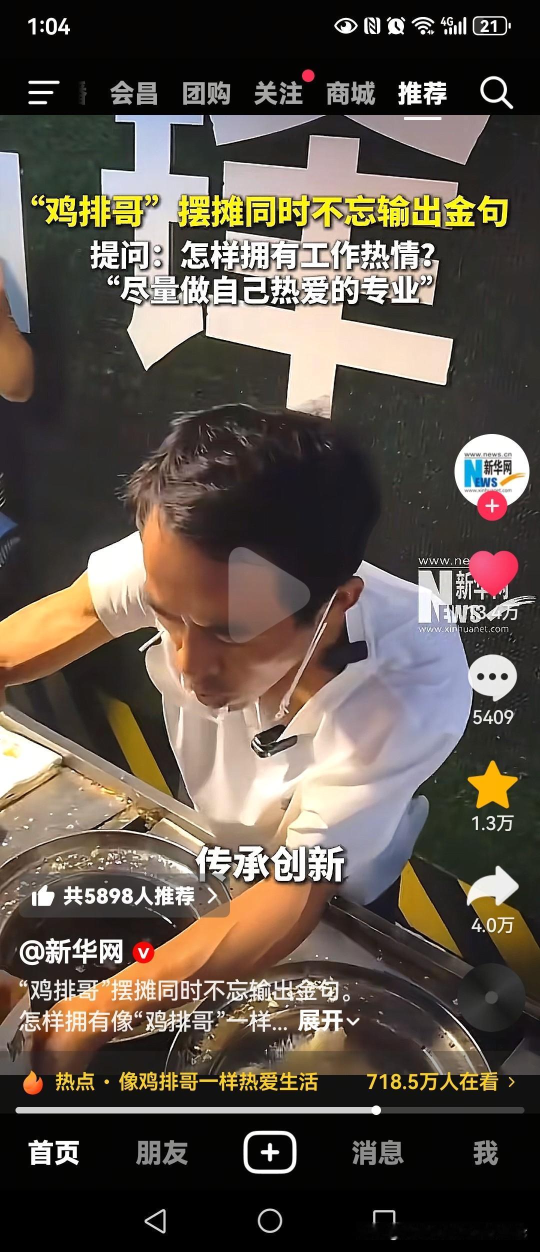 刚刚在抖音看到了江西景德镇“鸡排哥”摆摊同时不忘输出金句。记者提问:“怎样拥有工作热情?”他回答:“首先要找对自己的方向,尽量做自己热爱的专业,要坚持不懈地努力下去”!说的太朴实、好接地气啊!鸡排哥景德镇 鸡排哥