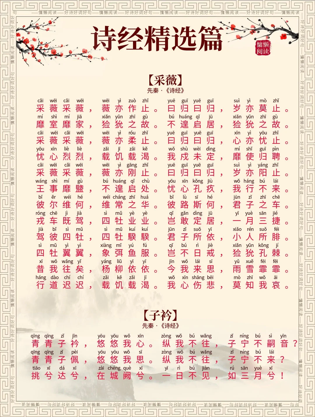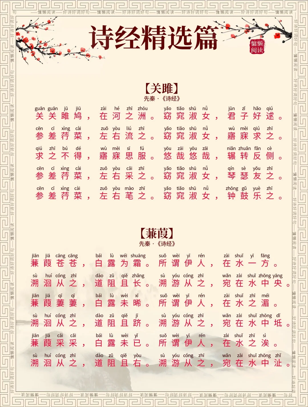 精选《诗经》里的四首经典诗歌,拼音标注版