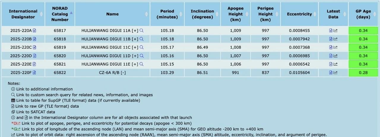 原来是5颗啊!任务徽章有点抽象,还真没看出来…… 这就是长六甲打上去的互联网低轨卫星11组星,这组卫星共5颗。 初轨数据:高度1000km左右,倾角86.50°左右。相关数据,基本上和04、05、09组卫星参数一致…… 截至目前,星网GW星座已经完成11组卫星发射,累计部署了86颗卫星。 看样子,今年突破100颗是没有任何问题了。后年还有大把的时间…… 加油吧!资源都给你了,就利用好……