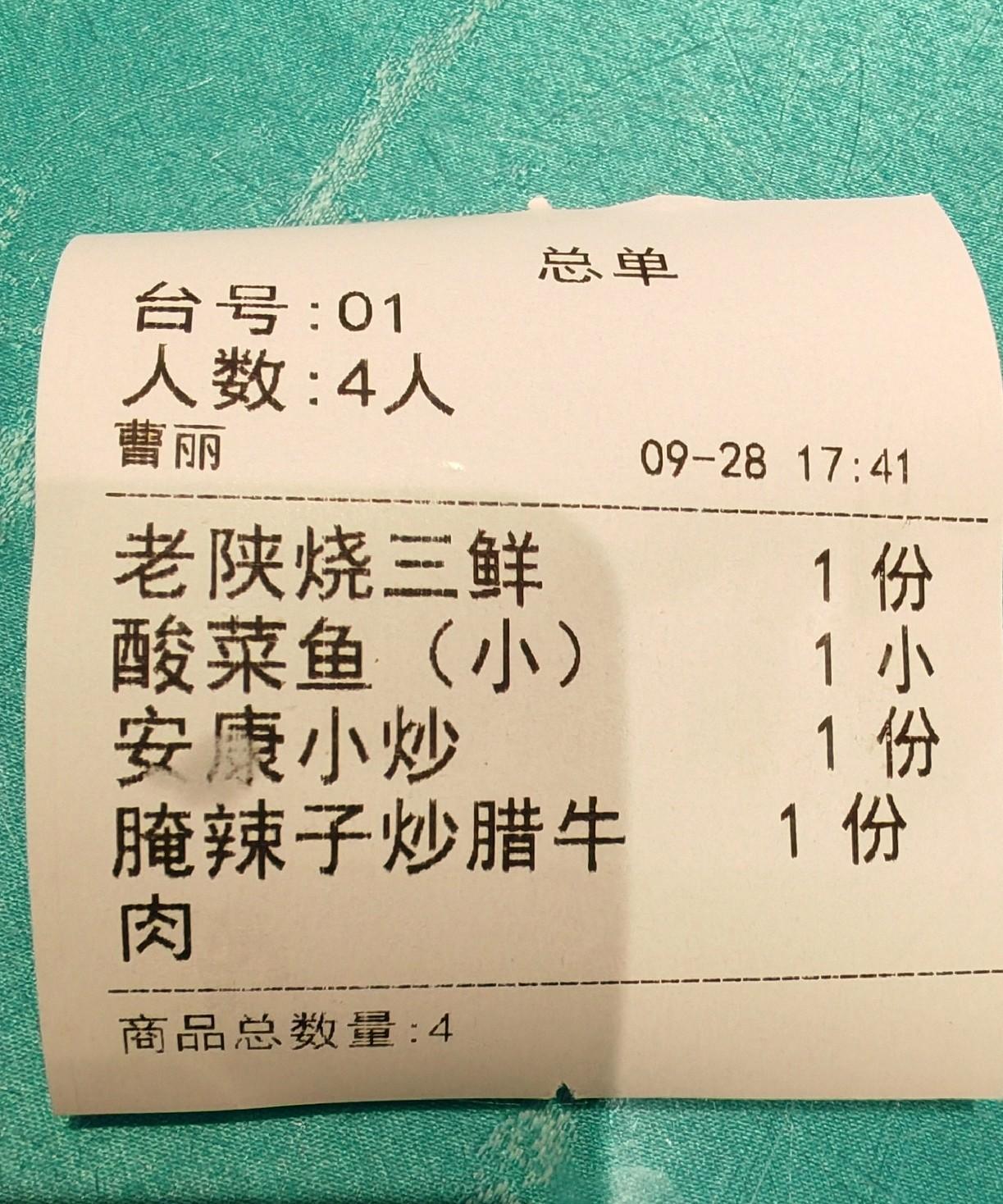 陕南菜好吃不好吃,关键是量大实惠! 孙女前天从铜川回西安了,昨晚上我和老伴儿与亲家两口子领上孙女去外面饭馆吃饭。由于天下雨行动不便,就选择在亲家住的附近,想来想去,吃过的饭馆只有那家叫小江南的陕菜馆可以,我们就又去了这家陕菜馆。 这是一家陕南安康菜馆,我们吃过多次了,也算是老顾客。我们去的时候是下午五点过些,吃饭的只有一桌客人,老板娘说,今天人都上班了,昨天周六人多,把她们忙坏了。 我们知道这家菜馆的菜量大,亲家公只点了4个菜和一锅米饭,我们没有吃完,还打包带回家了一部分。这4个菜分别是老陕烧三鲜、小份酸菜鱼、安康小炒、腌辣子炒腊肉,加一锅米饭,总共结账181元。 大家看看是不是很实惠?在西安这样的大城市,下馆子吃饭,花这点钱是不是很没面子?#分享美好生活时刻# #西安饭庄#你眼中的西安是怎样的呢?#