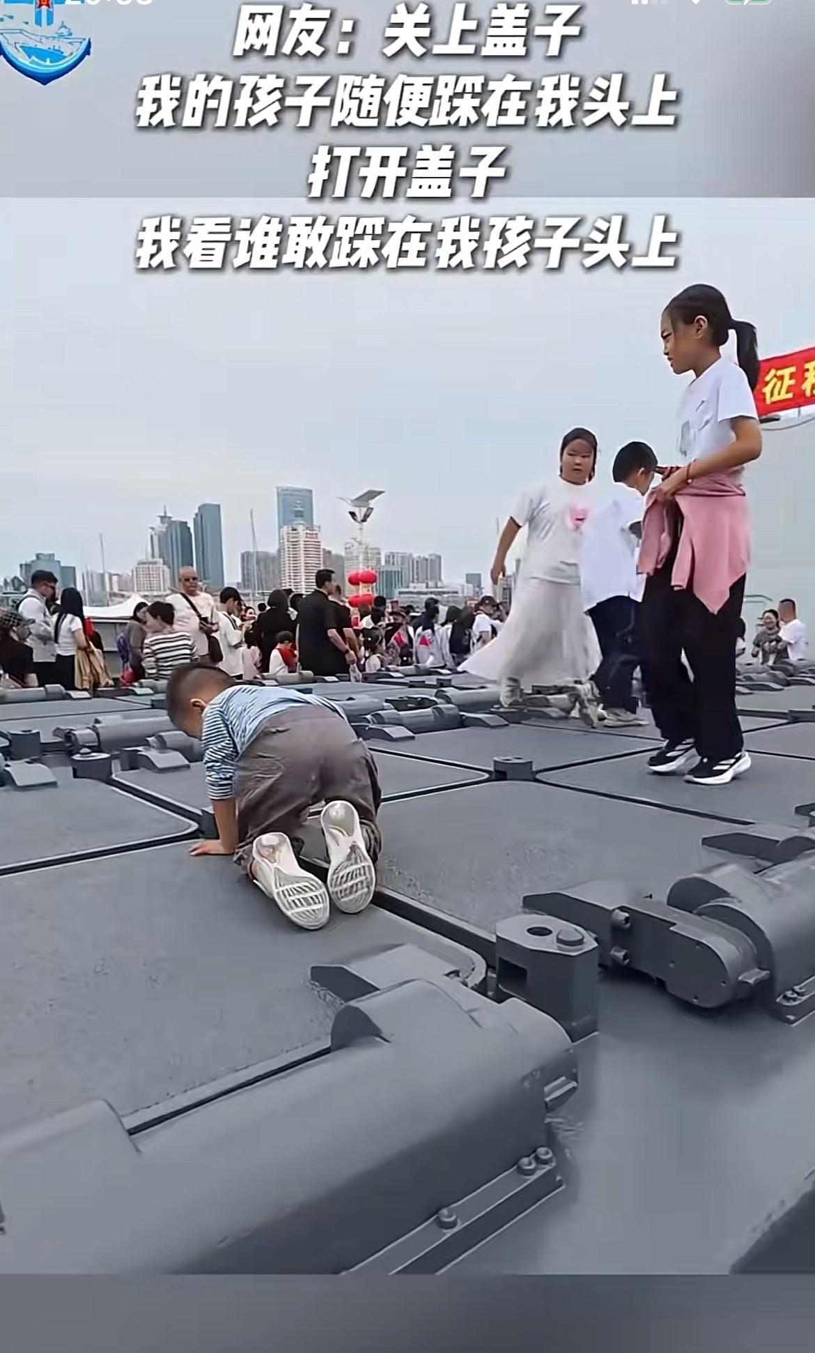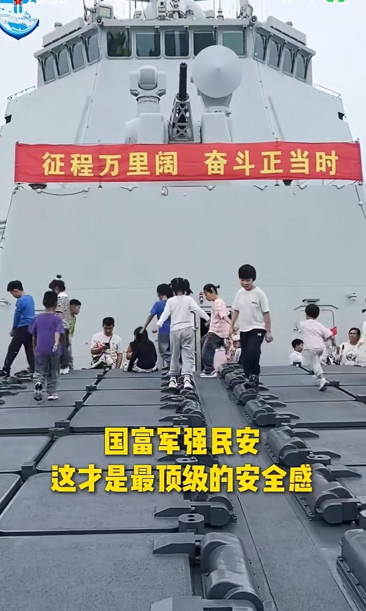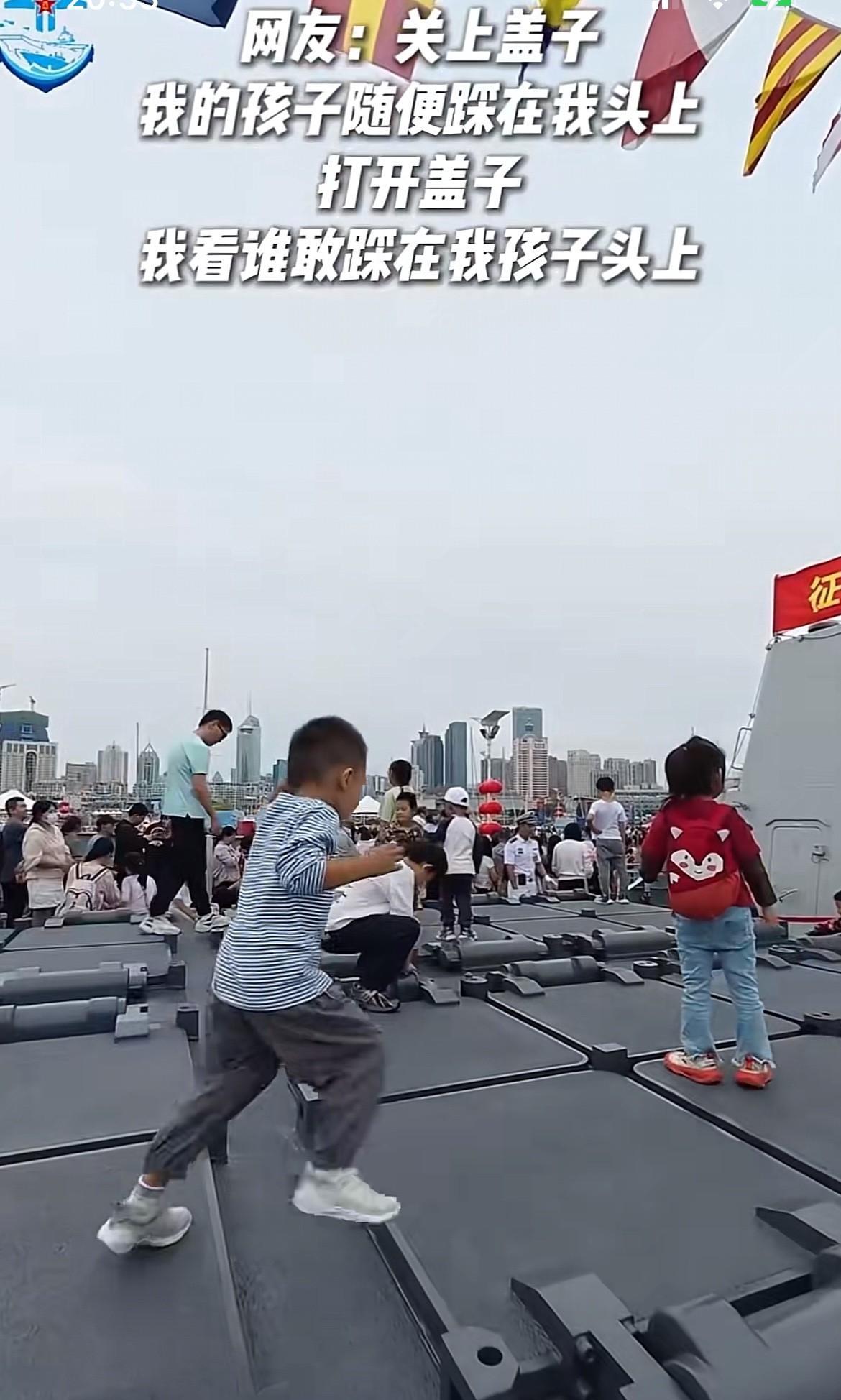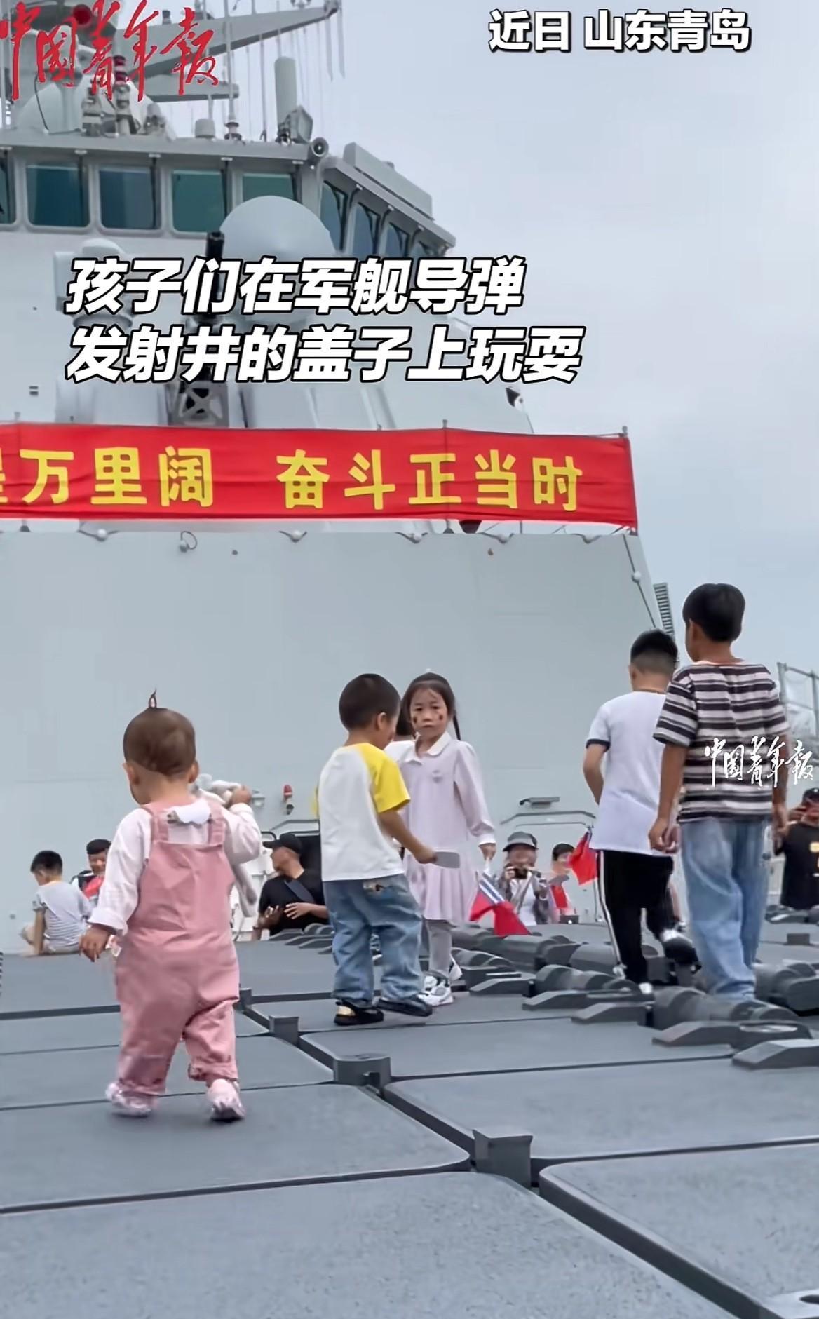 想知道这群蹦蹦跳跳的孩子们,她们脚底下的踩的是什么吗? 说出来可能很多人都不信,近日在山东青岛海军舰艇的开放日,这群孩子们脚底下踩的是,咱们军舰上的导弹发射井,之所以能看到这群孩子们,在军舰导弹发射井上玩耍,主要是因为咱们的海军足够强大,也有足够的自信,所以才安排了这样的活动,也允许孩子们在上面蹦蹦跳跳! 看着这群在军舰导弹发射井上,蹦蹦跳跳的孩子们,也让我第一次理解到了武器真正存在的意义,那就是能让孩子们可以无忧无虑的玩!