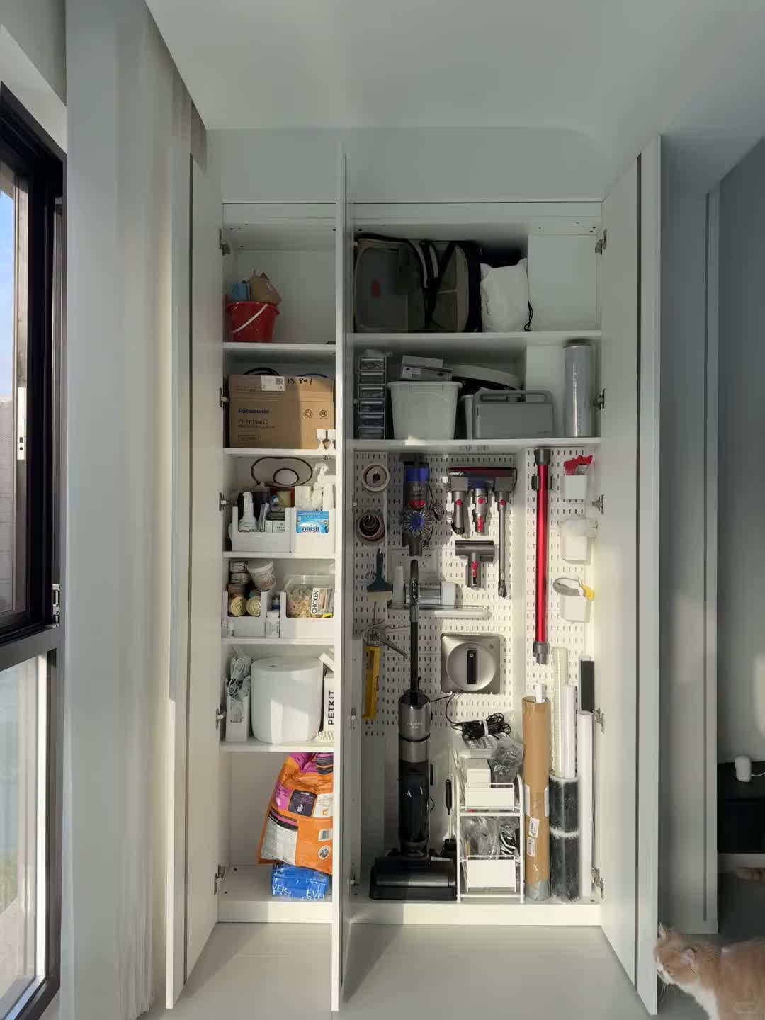 抄作业!阳台柜一定要留长格+无底板! 家里收纳最大的痛点之一是:梯子...