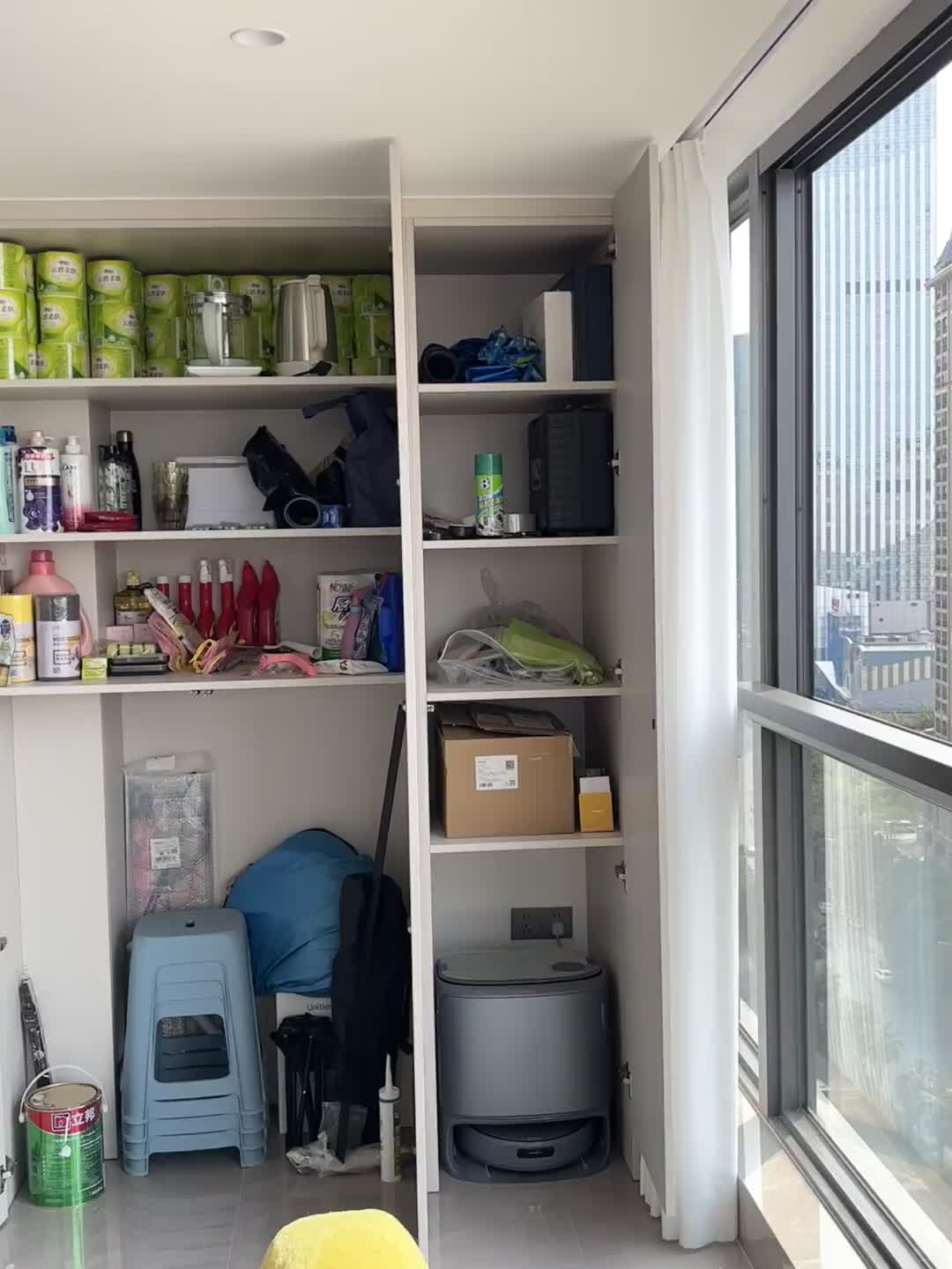 抄作业!阳台柜一定要留长格+无底板! 家里收纳最大的痛点之一是:梯子、凳子、洗地机、行李箱等大物件没地方收纳。