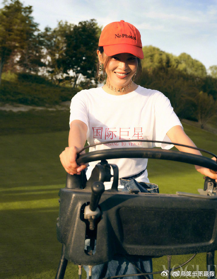 辛芷蕾衣服上有“国际巨星”字样,这件VOGUET恤的设计贴合她的气质,