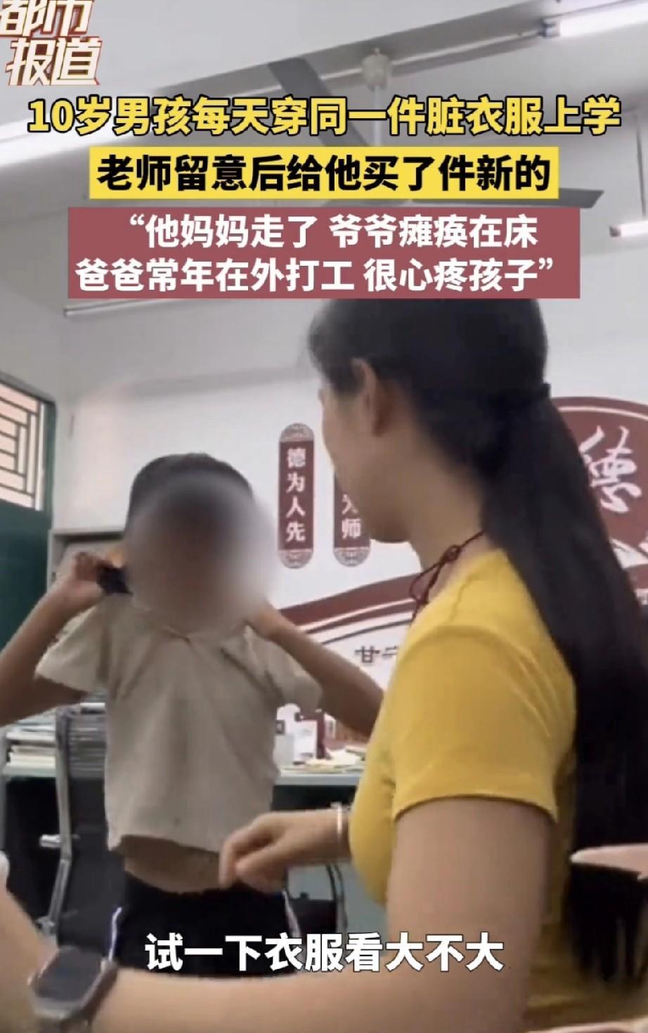 这才是教师应有的模样。常言道“一日为师,终生如母”,能邂逅这样的老师,实乃孩子们的福气。 开学之后,有个十岁的小男孩,每日都穿着同一件脏衣服来上学。老师留意到这一情况后,将他唤至办公室,柔声说道:“夏天已至,天气酷热,记得要勤换衣裳。”第二周,老师发觉孩子仍旧穿着前一日的衣服。她意识到,这孩子或许并非不爱整洁,而是仅有这一件衣服,根本没有换洗衣物。于是,下班后老师特意去购置了一件新衣服。次日见到孩子,便把他叫到办公室,让他换上试试,大小正合适。 老师说,孩子的妈妈在他年幼时就离开了,爷爷又因瘫痪常年卧床。孩子的爸爸独自在外地打工,很少归家。买这件衣服,就是希望孩子能穿得干净一些。这孩子在班里格外懂事。 为人师表,不只是教师职业的基本准则,更是对教师品行的至高褒奖。教师不仅要传授知识,更要传播教育理念,推动社会风气的改良与进步。老师期望知识能化作你的羽翼,助你飞向更为广阔的天地,而老师始终甘愿俯下身,做那个托举你的阶梯。