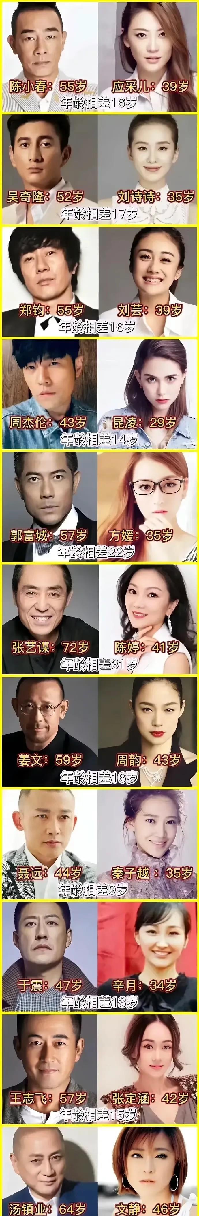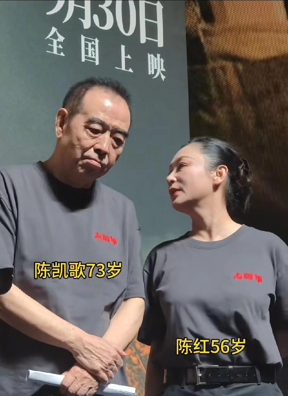看见陈凯歌和陈红的现状,才明白娱乐圈的一个潜规则。 众所周知,在演艺圈有很多老夫少妻组合,张艺谋和陈婷,张纪中和杜星霖,姜文和周韵,吴奇隆和刘诗诗、陈小春和应采儿等等。 这些女士大都年轻貌美,为啥会找一个比自己大十几岁的老公呢?或许很多人都想不明白。 其实看看陈凯歌和陈红就知道了。 最近他们正在为电影《志愿军:浴血和平》进行路演宣传,一个73岁,一个56岁,一起同框出现竟然没有丝毫的违和感。 而早些年,陈凯歌和陈红站在一起,状态差距非常明显,可如今这足足17岁的年龄差竟然被岁月神奇地抹平了。 可见,岁月不仅是一把杀猪刀,更是一个抹泥板,只要到了一定岁数,多大的年龄差都看不出来了。 为啥会这样?原因很简单,那就是女士不抗老。 当年的陈红肤白貌美、青春靓丽,和陈凯歌在一起完全像是两代人,而今在一起就是一对很般配的老夫老妻。 除却行业地位和经济因素,或许这就是为啥美女们敢于嫁给老夫的原因了。