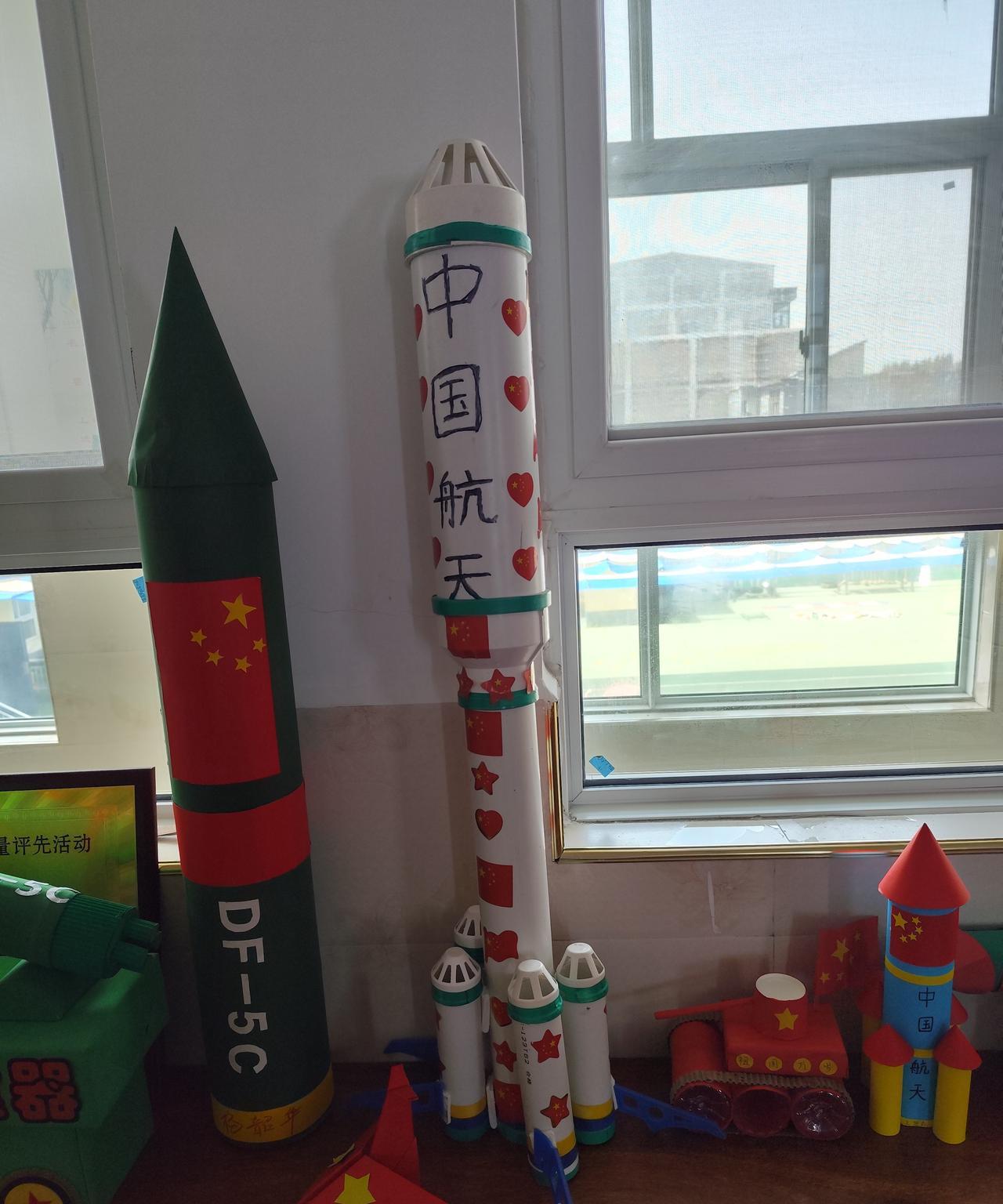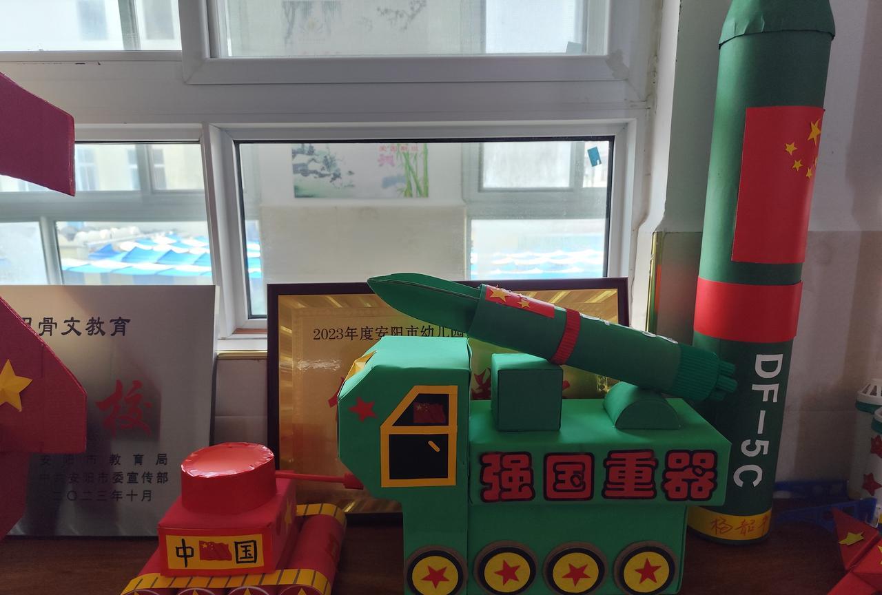国庆节到了,看看幼儿园孩子、家长、教师共同完制作的作品:“大国重器”。 祝伟大的