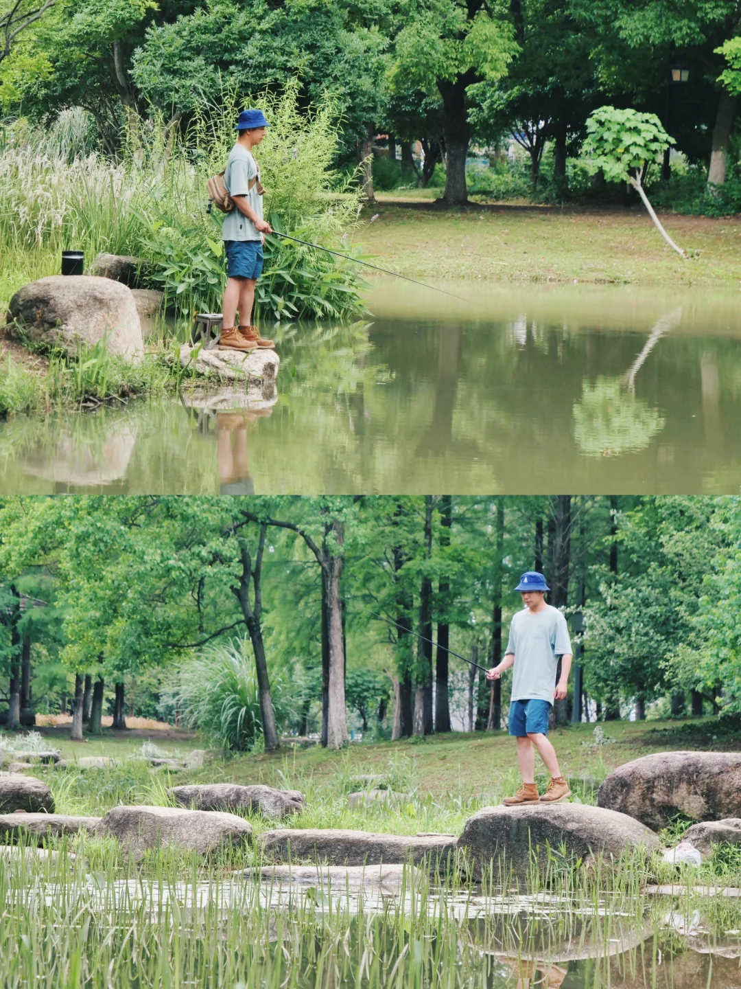1 首选城市公园河道 湖边浅石滩 水草边