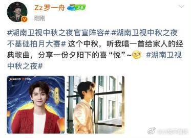 罗一舟官宣是悦也是耶超期待的罗一舟中秋晚会官宣啦!比耶瞬间少年气爆棚,透露要唱