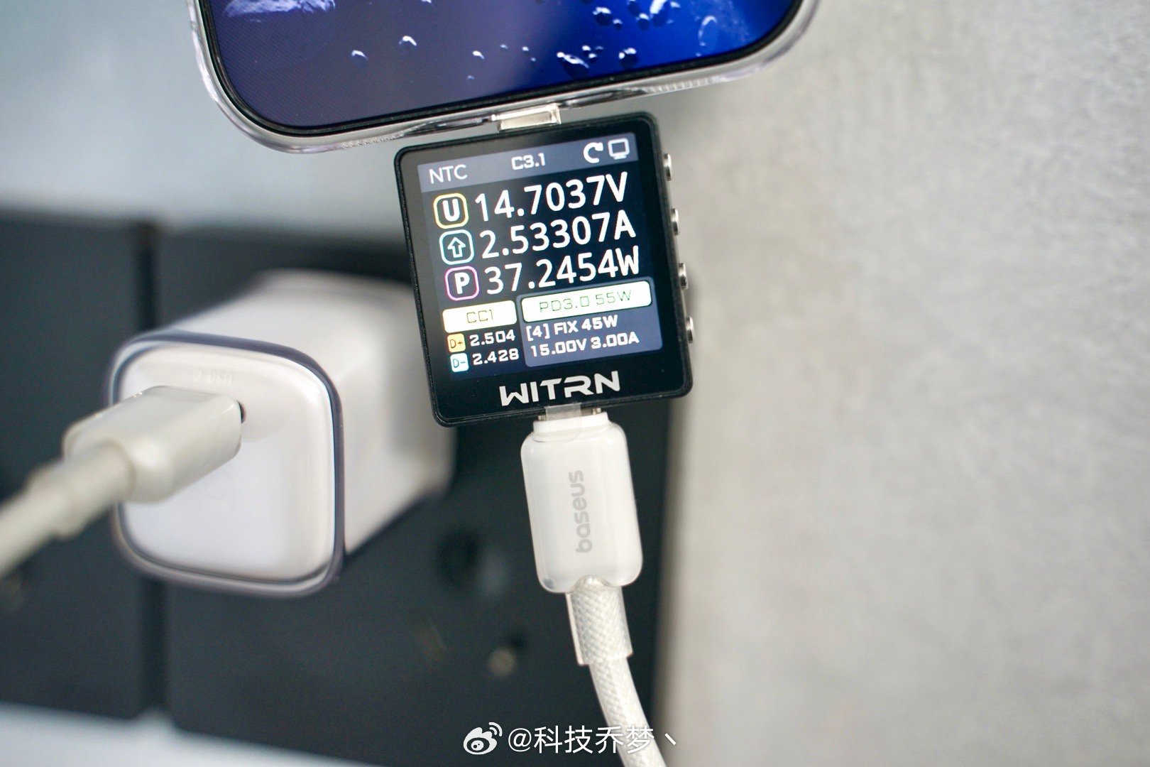 45W 冰透充电套装实测能给 iPhone17Pro Max 触发到37W 以上的功率,充坏包赔,完全不需要再买昂贵的官方充电头。我的苹果手机搭子