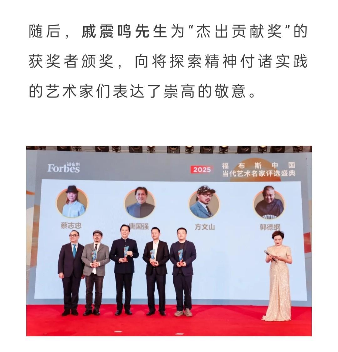 郭德纲荣获,2025福布斯中国当代艺术名家评选的“杰出贡献奖”。一同获得此荣誉的