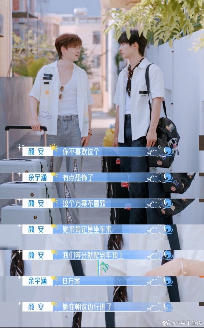 颜安余宇涵好吵的两个人 刚看到颜安和余宇涵一对登场,我的嘴角就不自觉地上扬,简直像看相声一样!这两个人的配合,不止吵,简直是欢乐的源泉,节目组快点给更多镜头!
