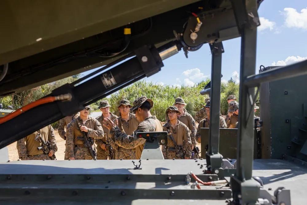 2025年9月20日,美国海军陆战队第3师第12海军陆战团第3营的士兵,日本冲绳汉森营地,在“坚决之龙25”演习中,接受来自第12和第3海岸陆战团海军陆战队员的海军-海军陆战远征舰拦截系统,哈马斯系统专业军事教育。“坚决之龙”是日本一年一度的双边演习,旨在加强美国海军陆战队第III远征军和日本自卫队人员的指挥、控制及多域机动能力,重点是控制和防御关键海上地形。
