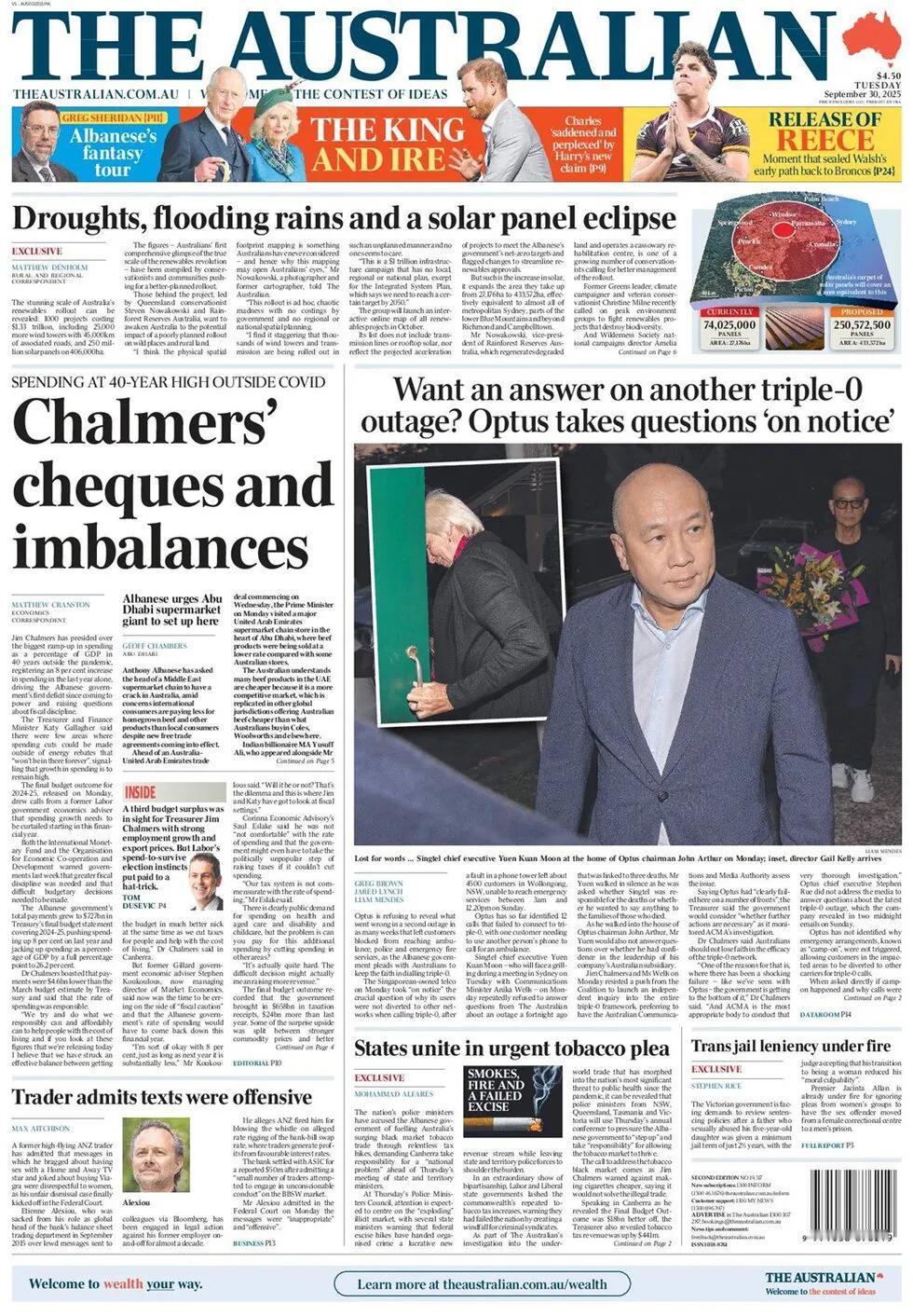 《澳大利亚人报》头版,新加坡电信公司名誉扫地,该公司首席执行官接受澳大利亚相关部