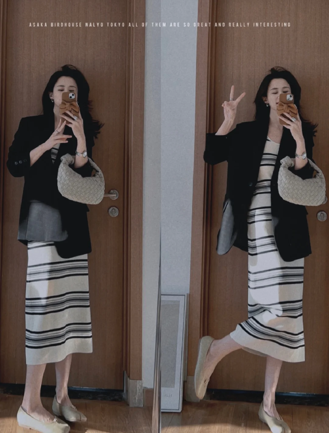 西装和连衣裙的搭配也是很多女性比较喜欢的搭配之一,那么连衣裙就建议选择那些款式比较知性的,不要太过性感了,不然气质会显得非常违和。
