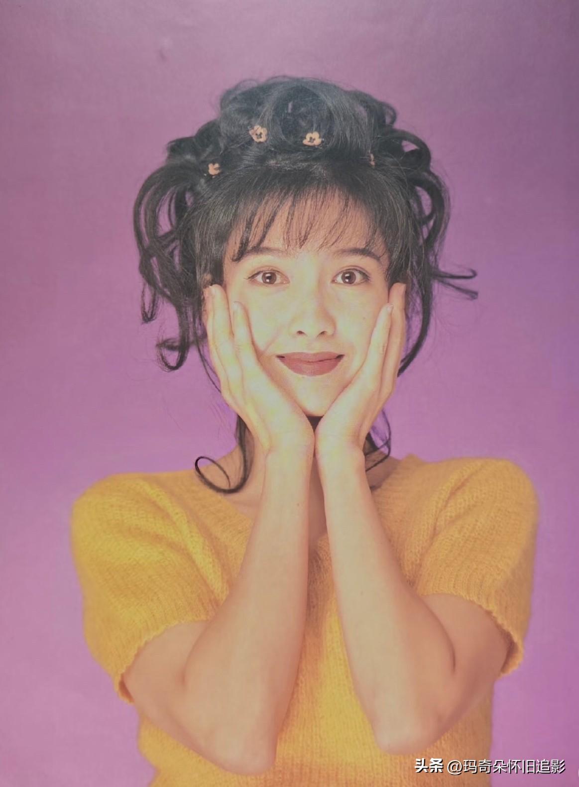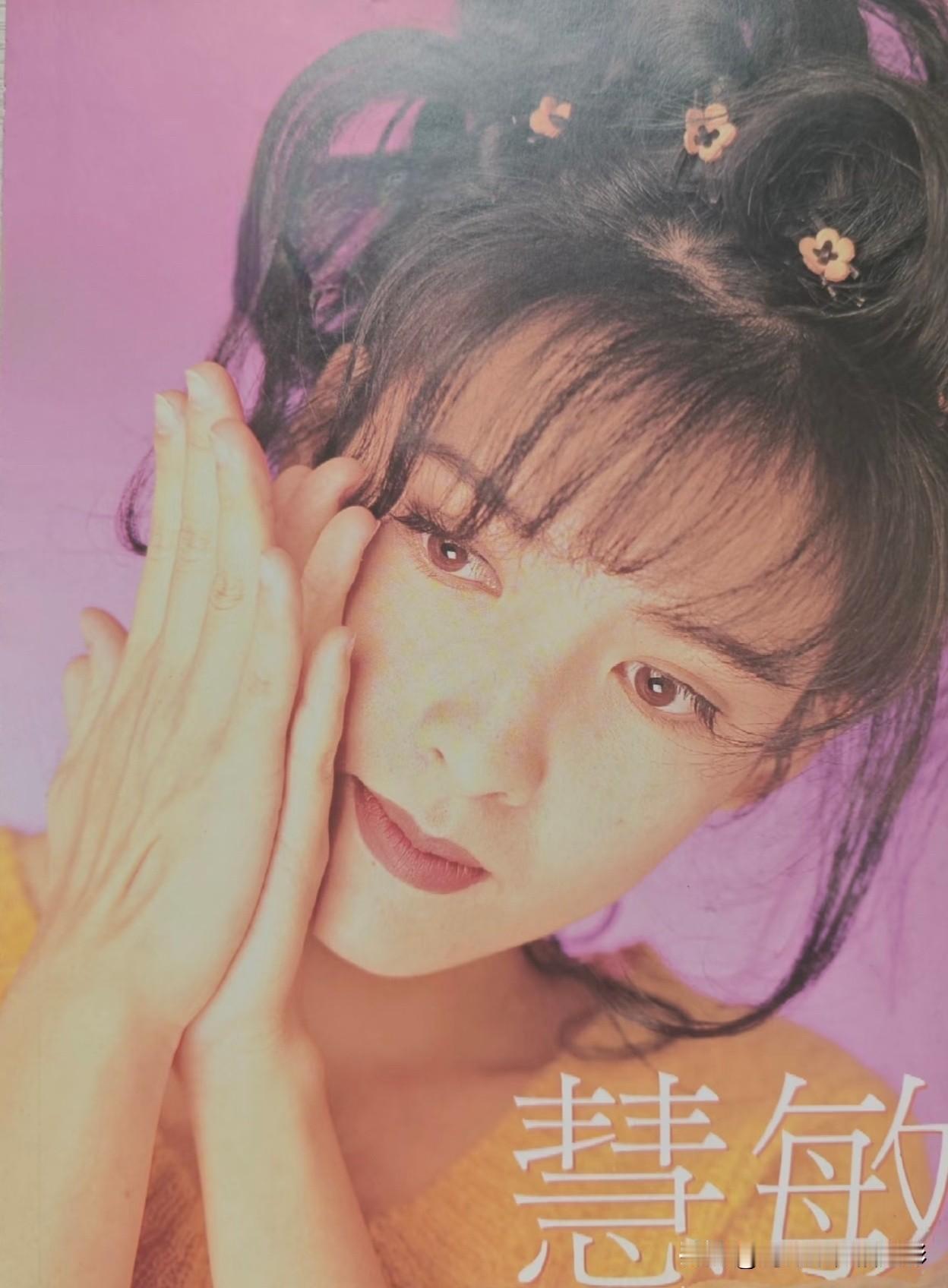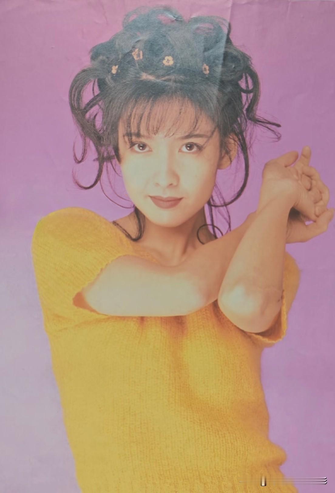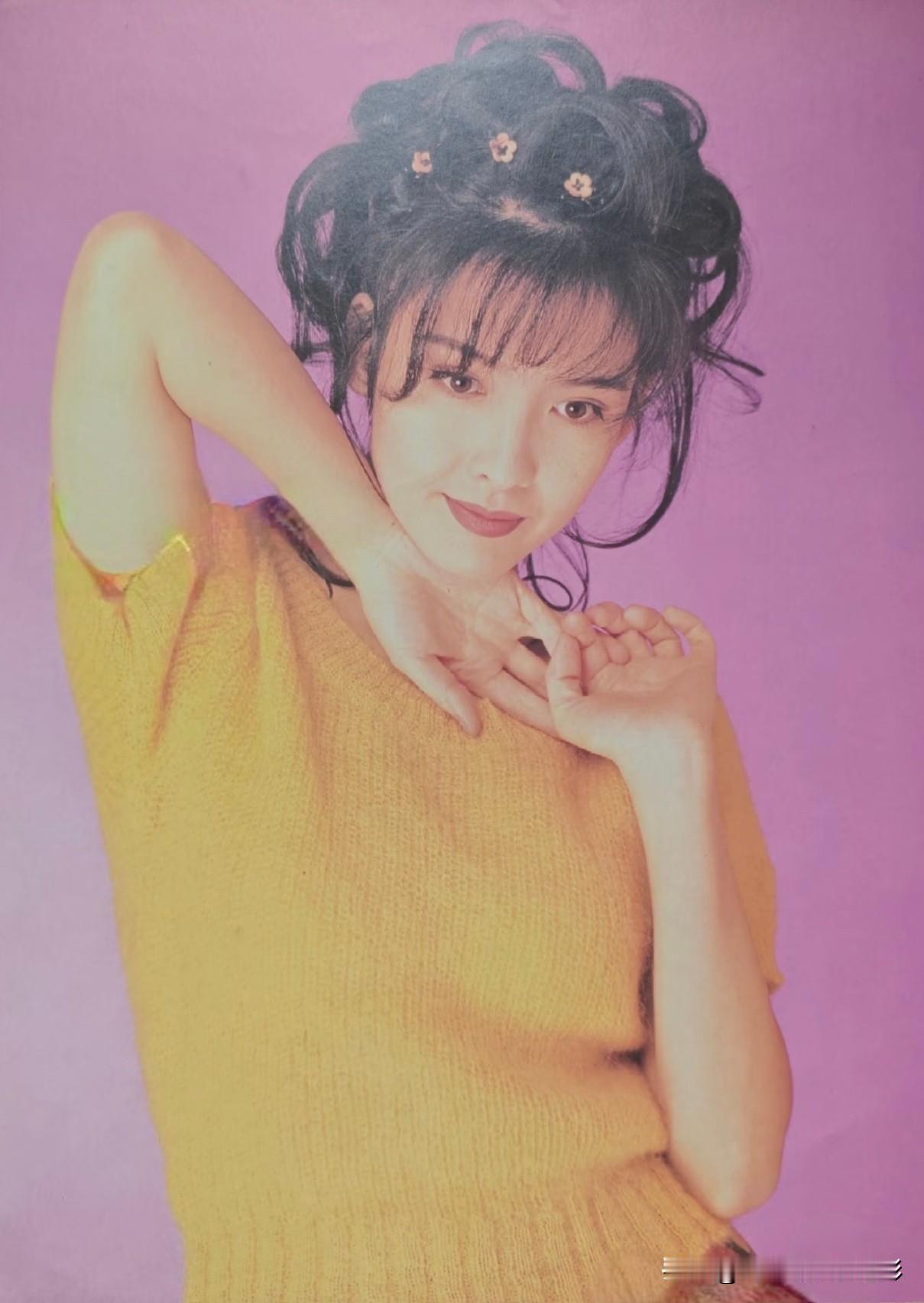 黄毛衣,紫背景,发丝卷得刚刚好。 这组旧照里的周慧敏,甜得像颗糖。周慧敏