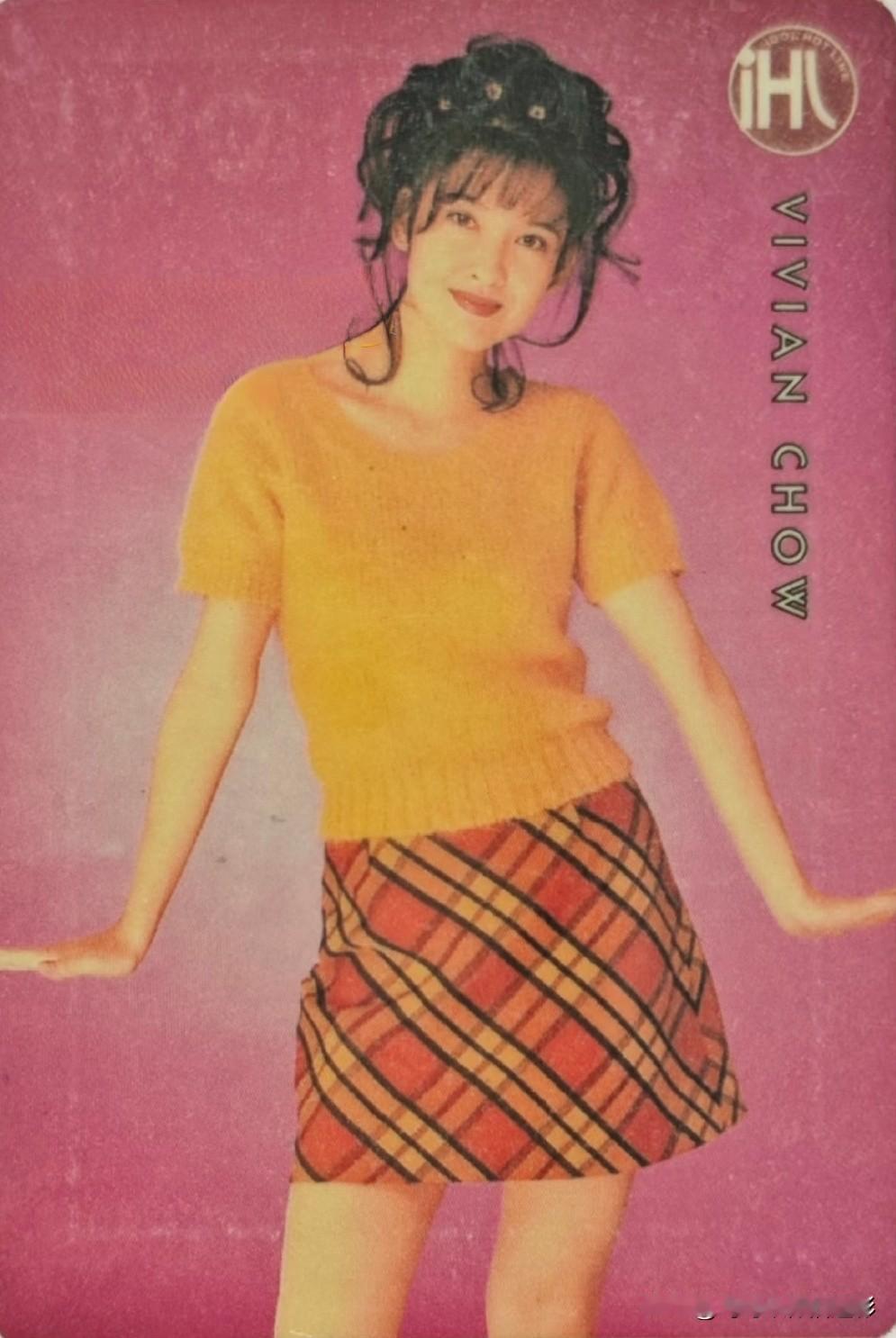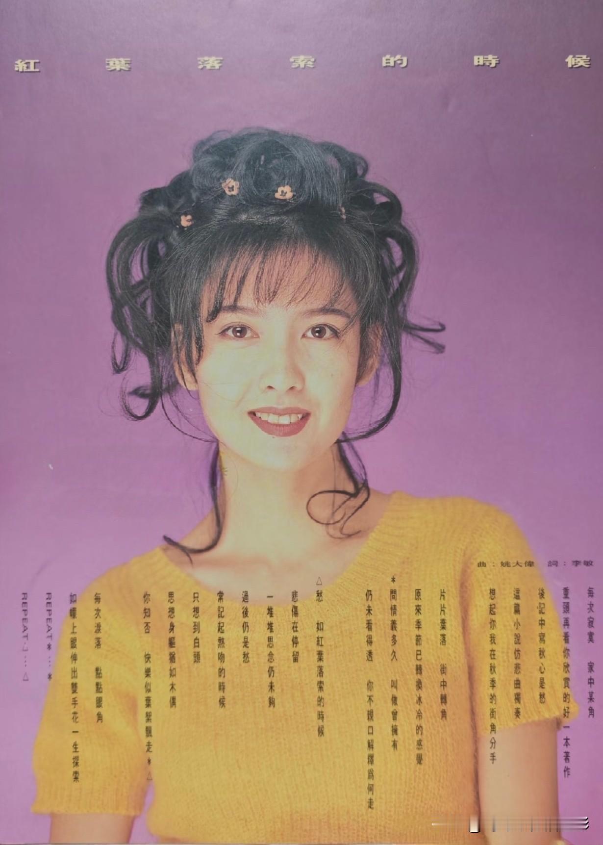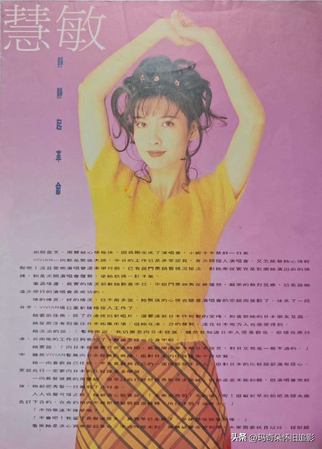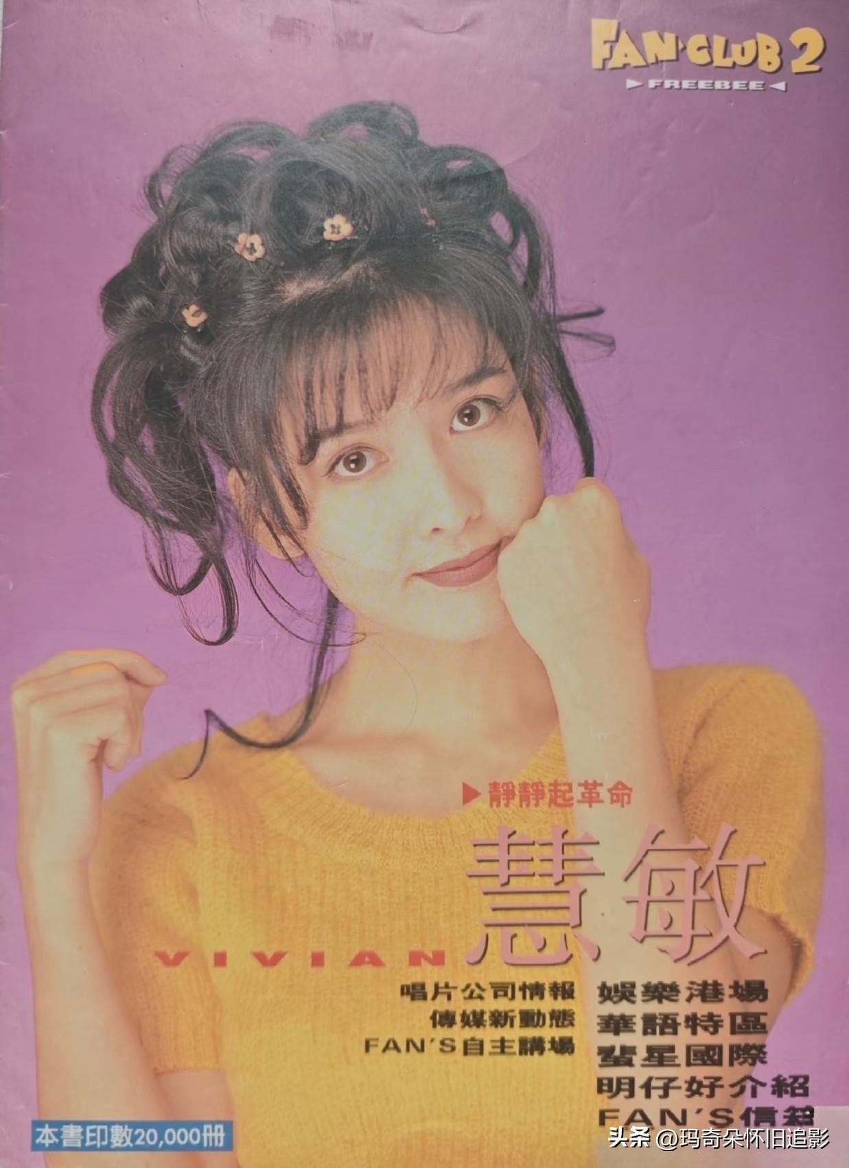 黄毛衣,紫背景,发丝卷得刚刚好。 这组旧照里的周慧敏,甜得像颗糖。周慧敏