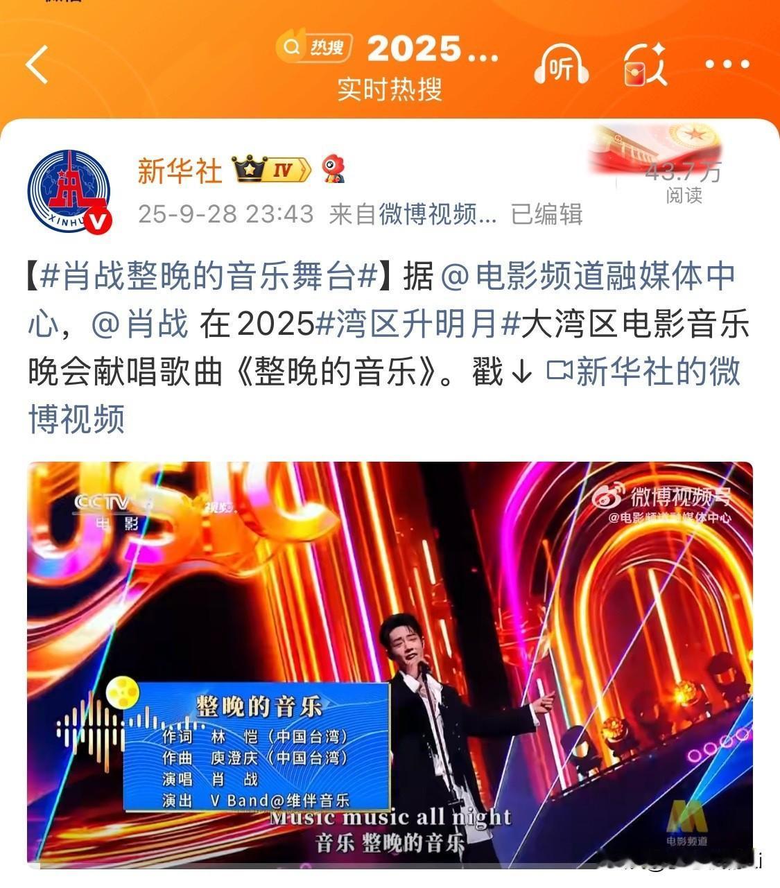 肖战大湾区晚会表演完美落幕,肖战单人热搜高达40多个,占据整场晚会90%的热度,