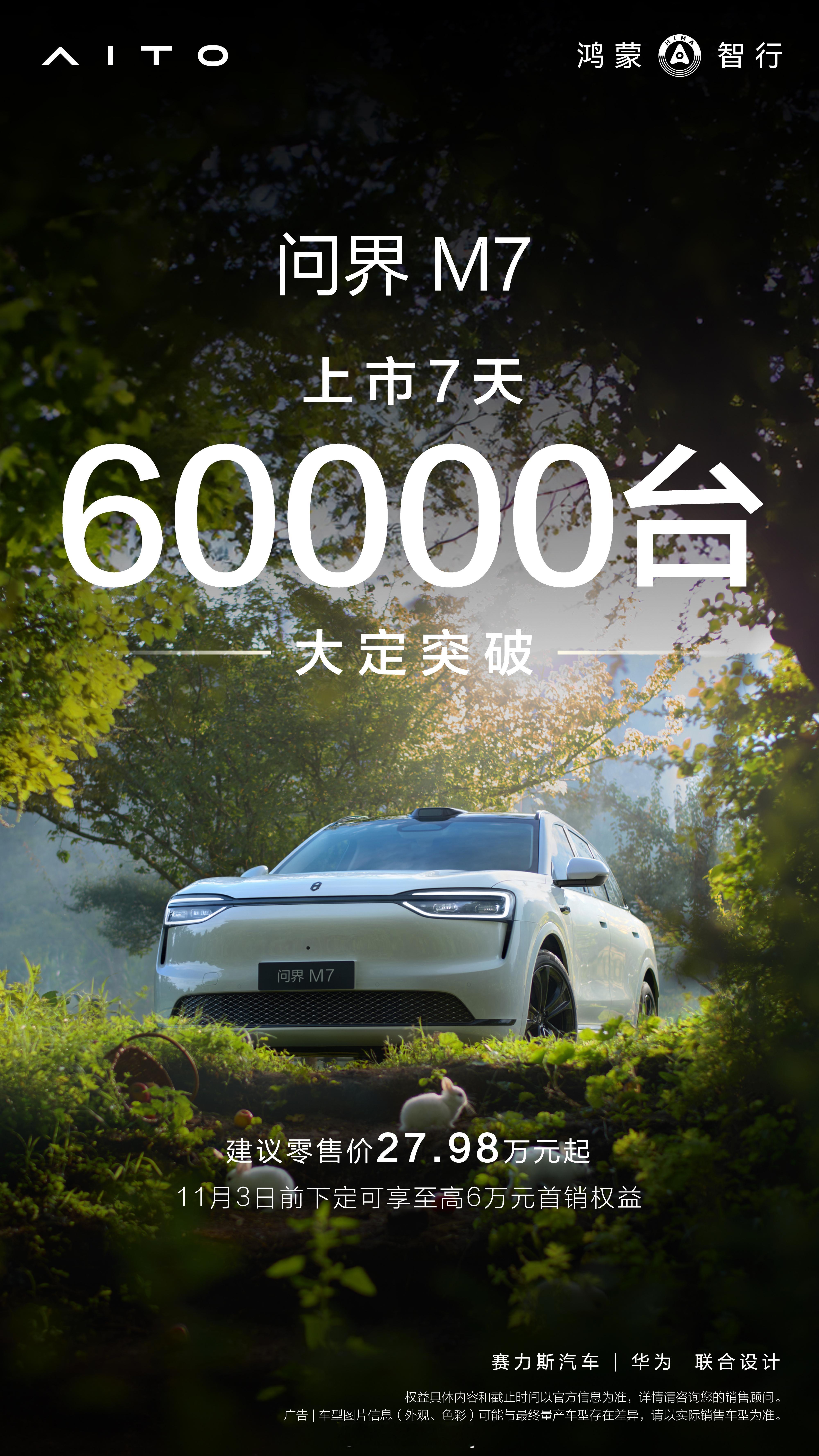 问界M7上市首周大定破6万 贡献了一辆,正在等发运,目前估计还在生产中,赛力斯抓紧拧螺丝。