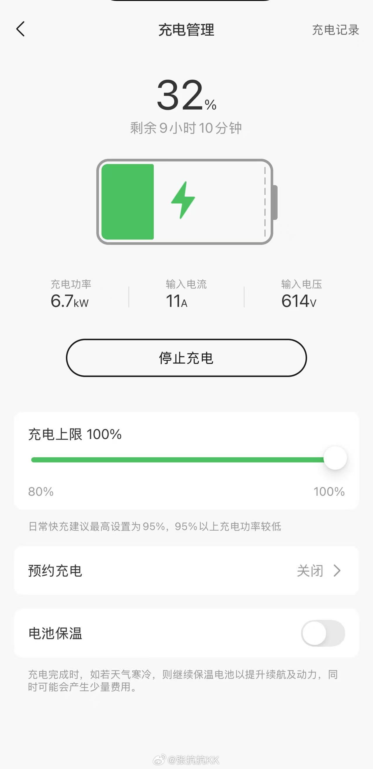 今天开i8带全家出去吃饭的,六大一小正好坐满。回家后插上充电桩,试了一下,1000V的桩兼容性还是很好的,6.7kW需要9小时充满 理想i8