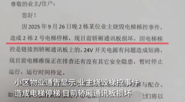 “必须严惩!”9月27日,四川广安,一名男子进入电梯后,在电梯运行的过程中,掏出打火机烧灼电梯里的刷卡区域,最终造成电路断路,物业为了业主的安全,紧急停运电梯排查隐患,并将视频交给警方处理。网友:真不怕自己被困在电梯里吗? 当时一名未穿上衣的男子进入电梯后,按下了自己的目标楼层按钮,随即站在电梯一角,虽然看似一切正常,电梯内并没有发生什么异常,直到突然间,这个男子掏出打火机,点燃了火焰,烧灼电梯内的NFC刷卡区域。 电梯刷卡区域本是为了保障小区安全而设置的,一些小区和写字楼要求业主刷卡后方可乘坐电梯,避免外来人员随意进出,提升了小区的安全性,这项措施的确给业主带来了便利和安心,可是今天的一幕,却让这一设施的安全性遭遇了严重考验。 这名男子的举动引发了电梯电路的故障,通讯板的损坏让电梯无法正常工作,工作人员接到报修后迅速做出反应,第一时间停运了该部电梯,并进行了详细的排查。 这一停运虽然及时,但也暴露出电梯本身的脆弱性和隐患,由于电梯电路出现了严重问题,物业不得不发布公告通知小区业主,并报警处理此事。 有不少网友看后表示惊讶和愤怒,“这男的也太胆大了,电梯在运行中居然这么搞,万一电梯故障,直接掉下去,后悔都没用!”更有网友表示,真不明白这种人是怎么想的,电梯本来是为了方便大家的出行,结果却被无缘无故破坏。 从事情的经过来看,这个男子的行为完全没有任何理智和公德心,我们都知道,电梯是一种相对封闭的空间,一旦出现问题,后果不堪设想。 而电梯出现故障的原因也不仅仅是电梯本身的问题,很多时候,正是一些人的不负责任和无谓的破坏,才给公共设施带来风险。 即便这名男子没有受到及时的制裁,但从长远来看,他的行为不仅危害了自己,还给他人带来了巨大的安全隐患。 这种行为背后反映的,不仅仅是对公共设施的不尊重,更是对自己和他人生命安全的不负责任,我们可以理解人为事故的偶发性,但这种恶意破坏却是完全不该容忍的。 更令人感到遗憾的是,这种不理智的举动很可能是出于一时的情绪或无聊,却没有考虑到后果。 对于电梯这一公共设施来说,大家在使用时应当更加小心谨慎,像这种故意烧灼电梯刷卡区域的举动,不仅会破坏公共设施,也可能带来不必要的安全隐患。 甚至在极端情况下,可能导致电梯无法正常运行,给乘客带来不便,更重要的是,在我们享受便利的同时,也应该理解维护公共设施的责任和重要性。 社区物业也许应加强对电梯使用行为的监控,进一步防止此类事件的发生,比如通过更严格的进出管理,安装更多的监控设备,以及及时向居民进行安全提示,确保大家在公共场合都能遵守秩序,保障每一位居民的安全。 总之,这起事件的教训不仅仅是对个体行为的警示,也提醒我们每一个人,在享受便利和公共设施时,应该更加珍惜和维护这些资源,而不是随意破坏。 在现代社会中,安全不仅仅关乎一个人的行为,它关系到每一个人的生命安全,对于那些做出不理智行为的人,应该依法严格追责,让这种不负责任的行为得到应有的惩罚,同时也希望社会能够更加关注和改进公共设施的安全性和管理,避免类似事件的再次发生。 对于这件事情,大家有什么看法? 信息来源:《四川广安一男子火烧电梯梯控面板致停运 警方已立案调查》百姓关注