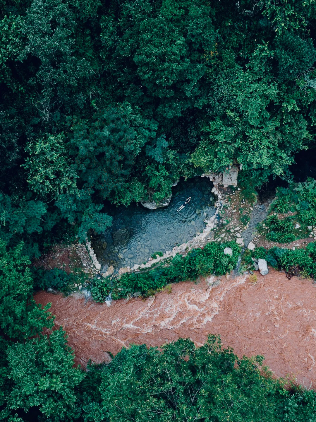 温泉旁边有一条奔腾的河流,大自然的神奇。