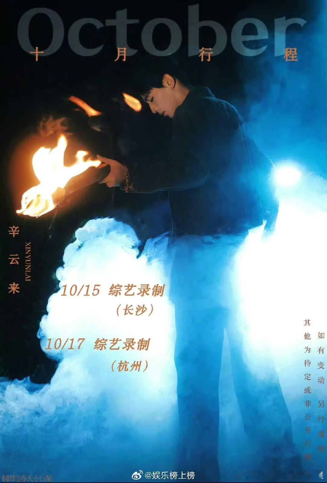 辛云来十月行程图 辛云来十月行程来啦!又有新的综艺录制了,期待~