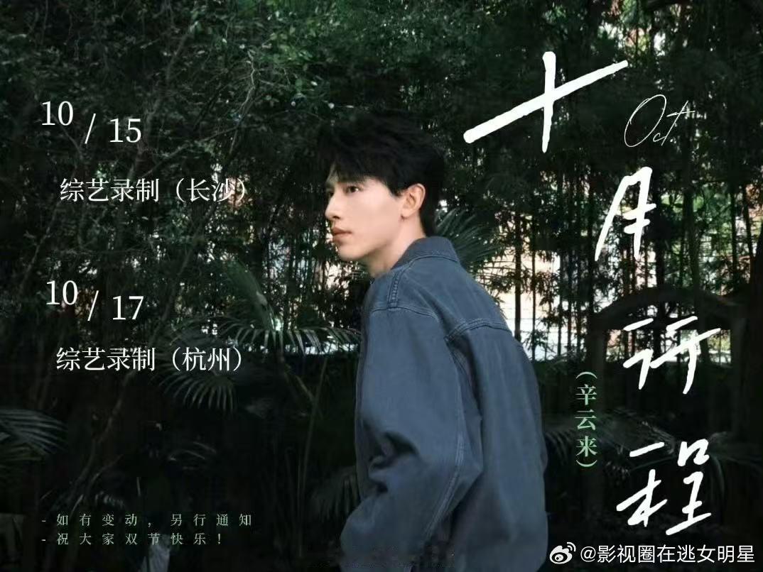 辛云来十月行程图辛云来十月行程来啦!又有新的综艺录制了,期待~