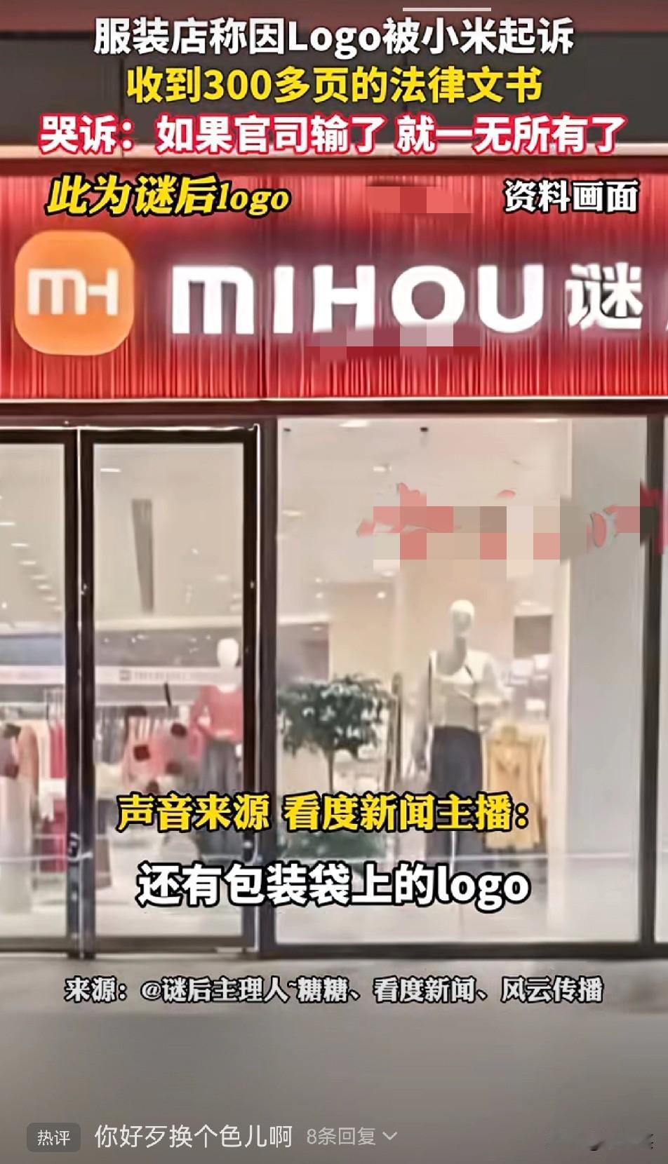 洛阳一服装店老板摊上事了 就因为店里logo和小米太像 被小米起诉,收到30