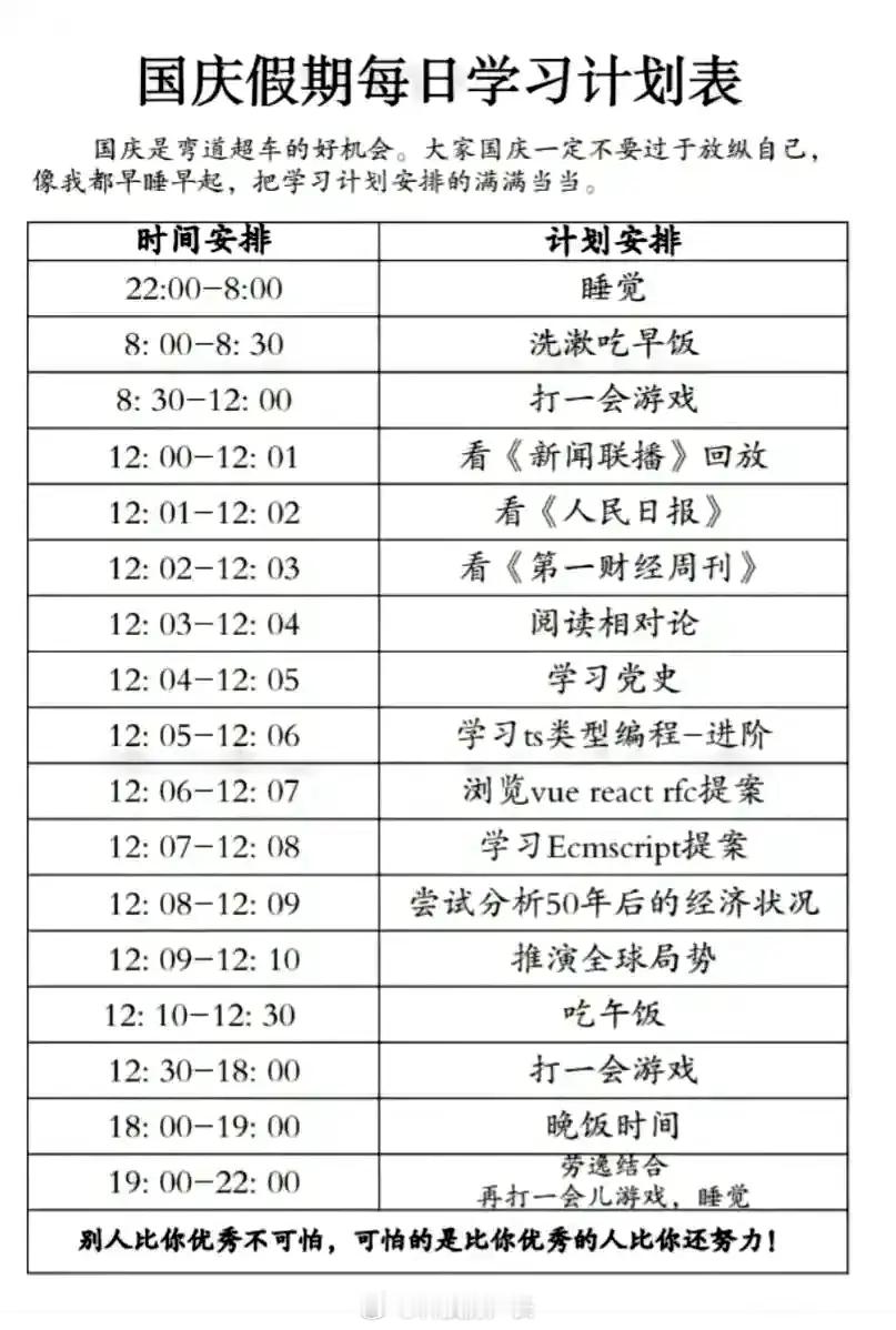 国庆假期安排的很充实