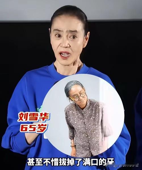 谁能想到65岁的刘雪华已经是个没有牙齿的老奶奶啦,刘雪华一直给人琼瑶女神,或者太后的角色形象,其实她已经满口假牙。 这满口假牙还和她带来角色,扮演90岁老奶奶毫无违和感。