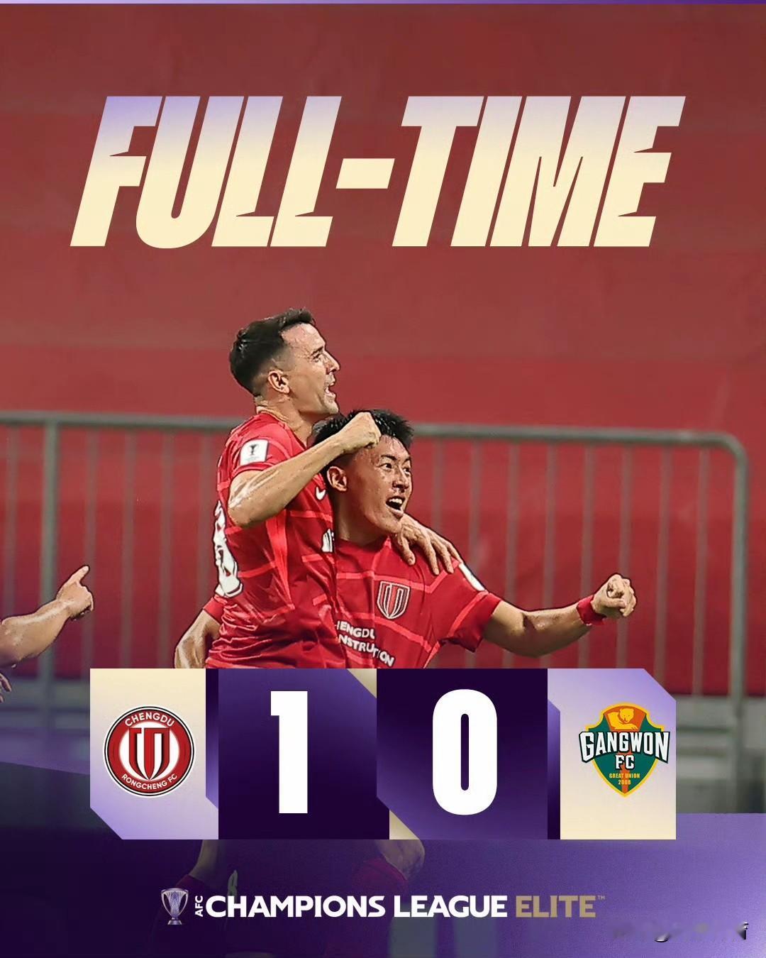亚冠精英联赛成都蓉城1:0江源FC取得队史首胜,又是周定洋凌空抽射建功!在上海海港、上海申花和北京国安连续疲软之后,首次进入亚冠赛事的成都蓉城为中超球队带来首胜,确实有点让人意想不到。成都蓉城双线作战,联赛争冠亚冠争光,川军踢出让人既尊重又热血的足球!希望本赛季成都蓉城夺得联赛冠军,并且能够进入亚冠淘汰赛!